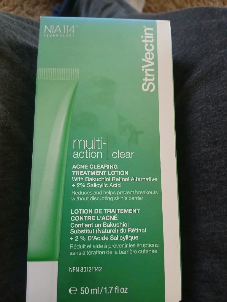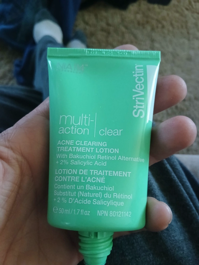 Selling a tube of StriVectin Multi-Action Clear Acne Clearing Treatment Lotion. It contains Bakuchiol Retinol Alternative + 2% Salicylic Acid. It helps reduce and prevent breakouts without disrupting the skin's barrier. The size is 50 ml / 1.7 fl oz ×5