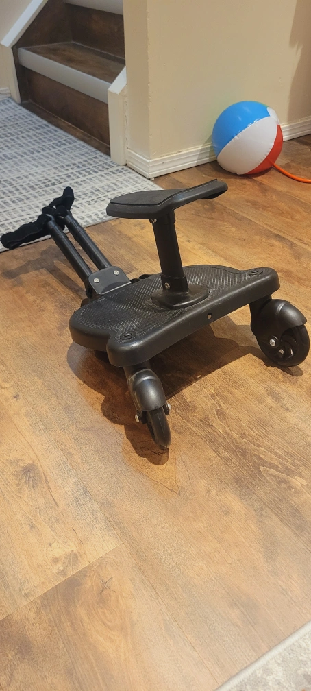 Selling a stroller board with a seat attachment. It's great for toddlers who want to ride along but also need a break from walking. The board easily attaches to most strollers and provides a comfortable seat for your little one. It's in great condition and ready for a new home!