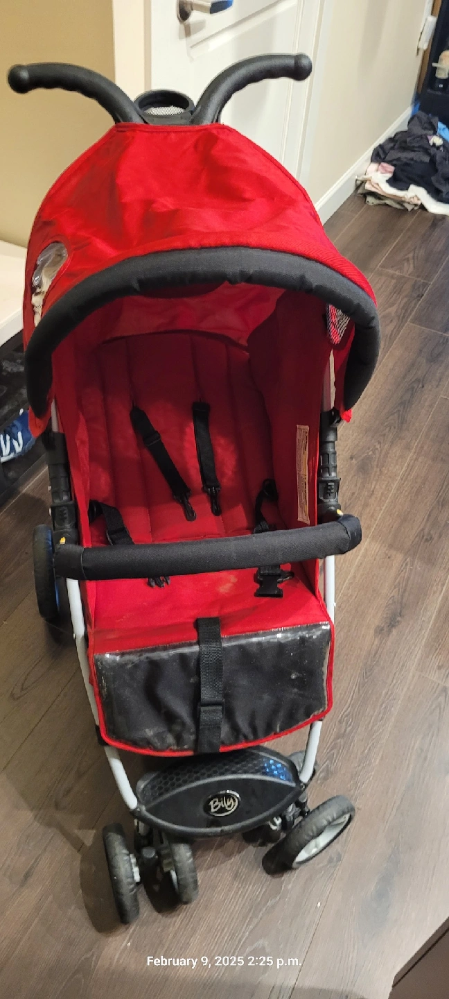 Selling a stroller in red! It's in good condition and ready for new adventures. This stroller is lightweight and easy to fold, making it perfect for city living or travel only used it a couple of times for my grandson