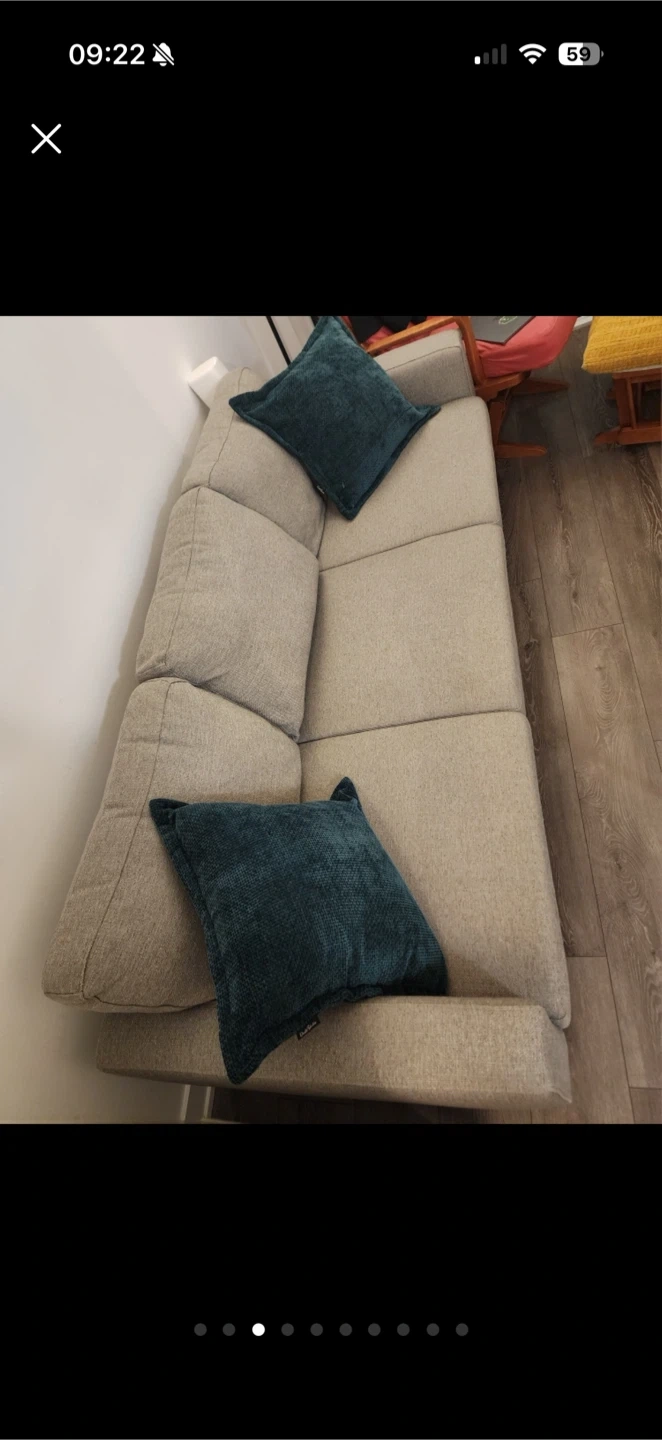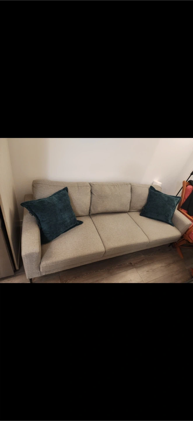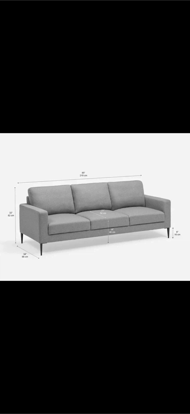 Selling a comfortable gray sofa that will fit in any space! The sofa is in great condition and ready for a new home. Dimensions are approximately 85 inches in length, 32 inches in height, and 34 inches in depth