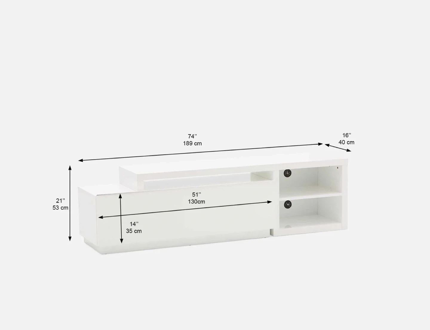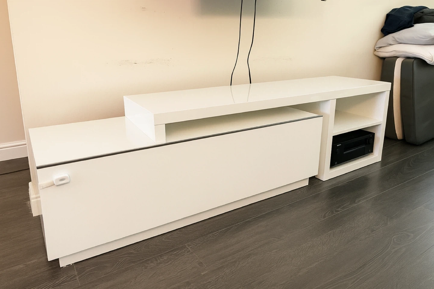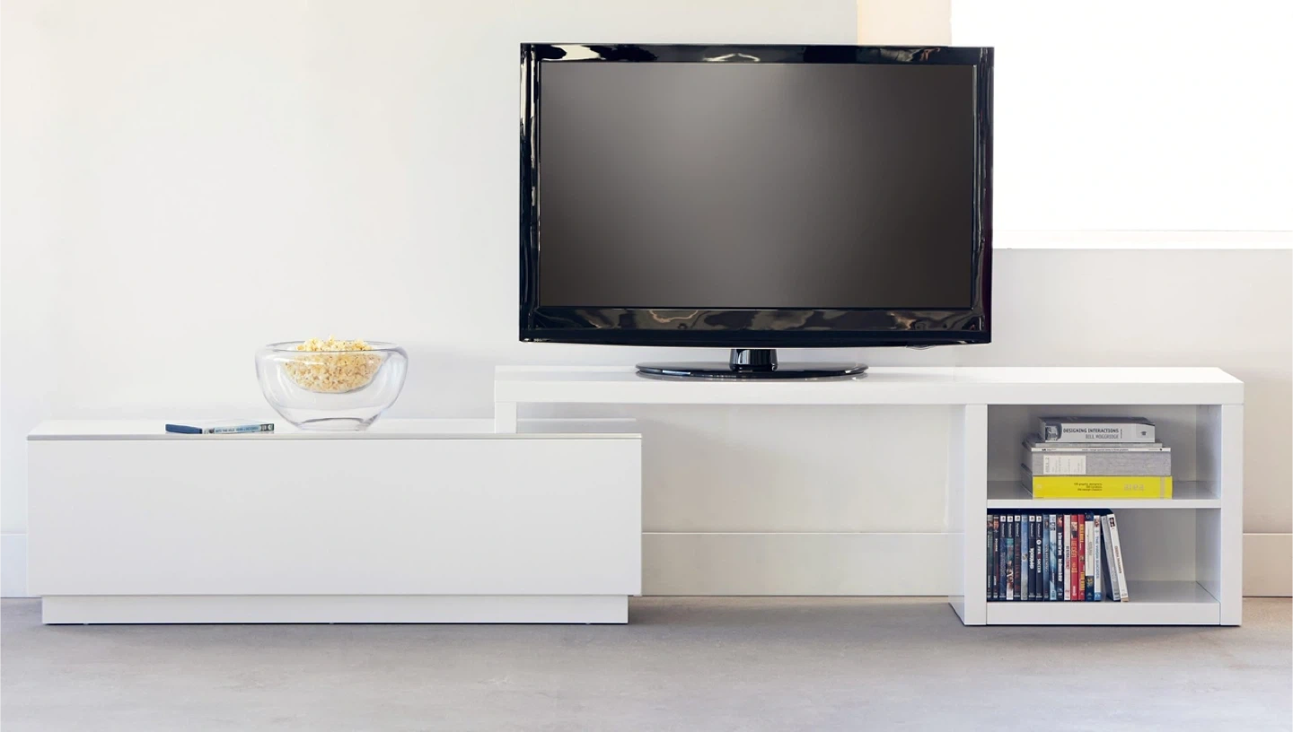 Selling a modern expandable white TV stand from Structube. It has a sleek design and offers ample storage space. Perfect for any living room!