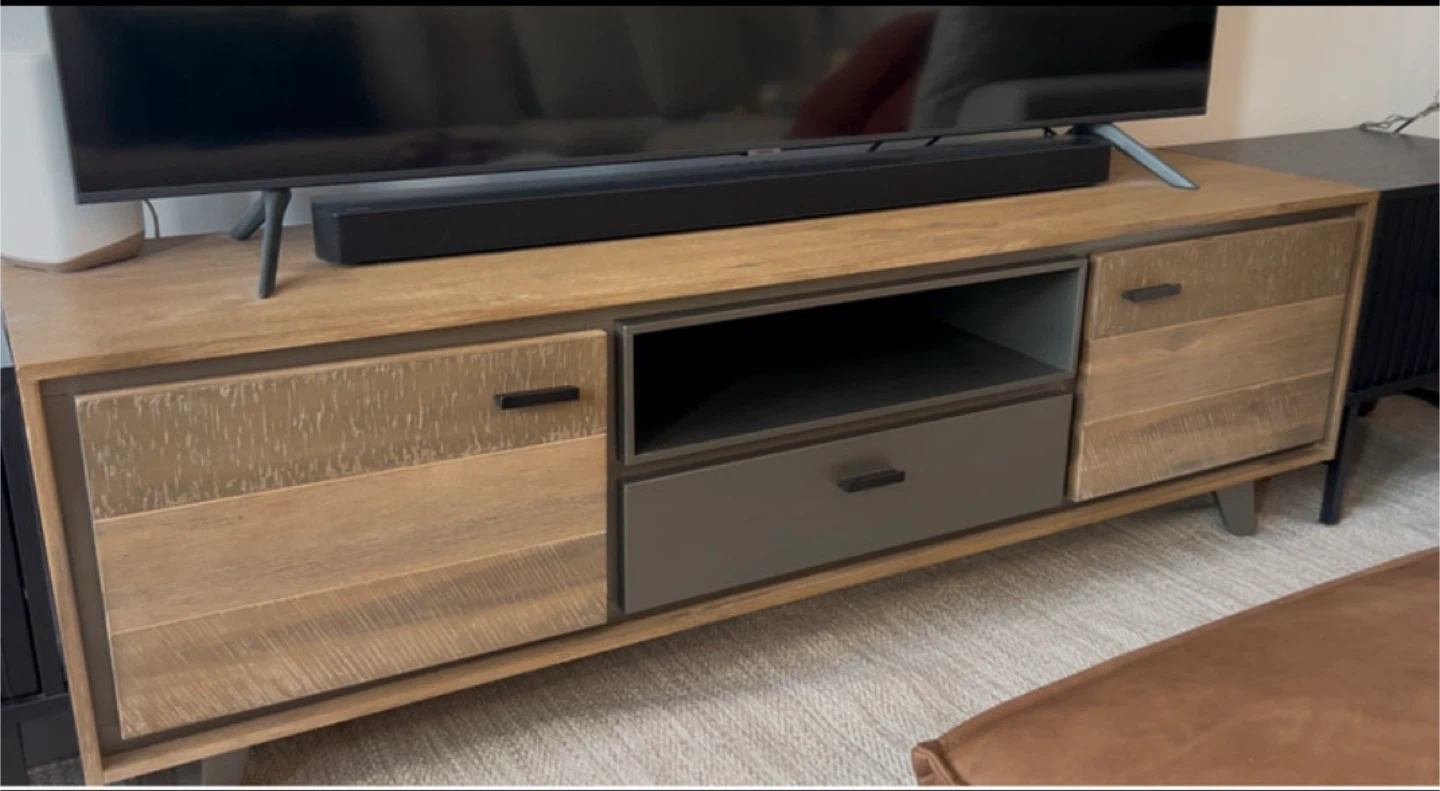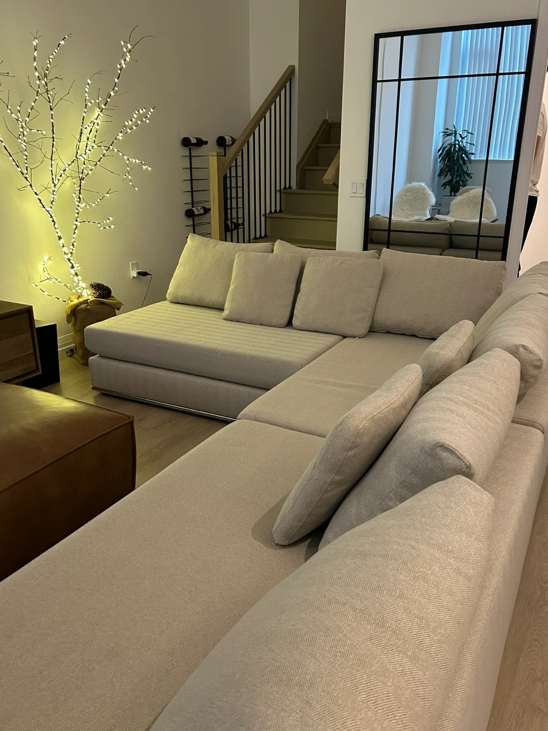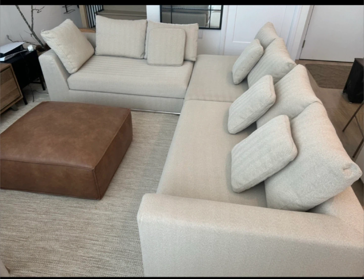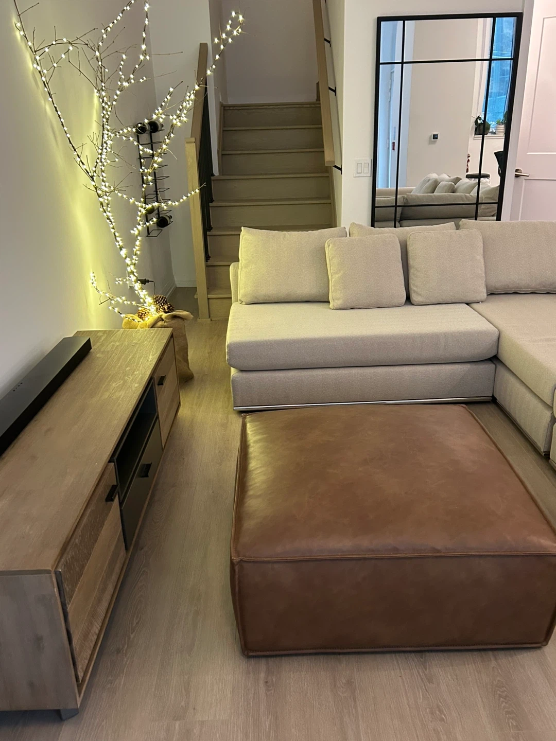 144Selling a beautiful living room furniture, all purchased from Structube. Includes a sectional couch, square ottoman, wooden media unit, two wooden armchairs and wall mirror. All like new! I’m selling because I’m moving. Each item can be sold separately. You can find all of these items in my list of items for sale.