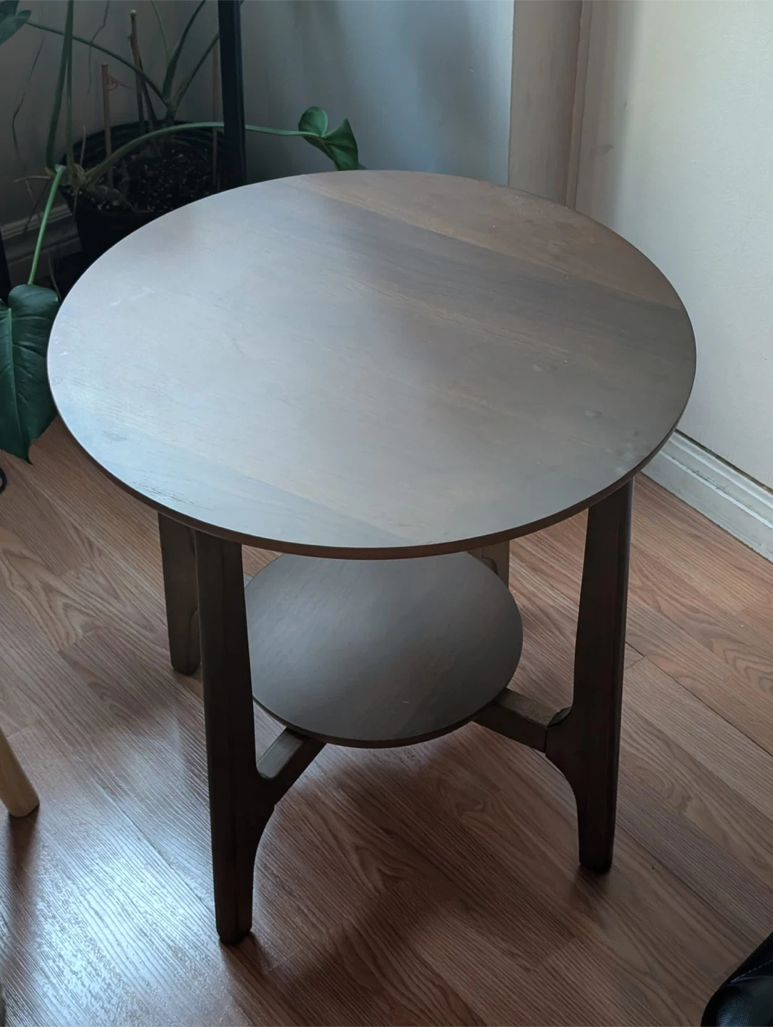 10Selling a cute brown round side table! It's perfect for a small space and adds a touch of warmth to any room. There are some minor signs of use, but it's still in great condition. Original price $149.