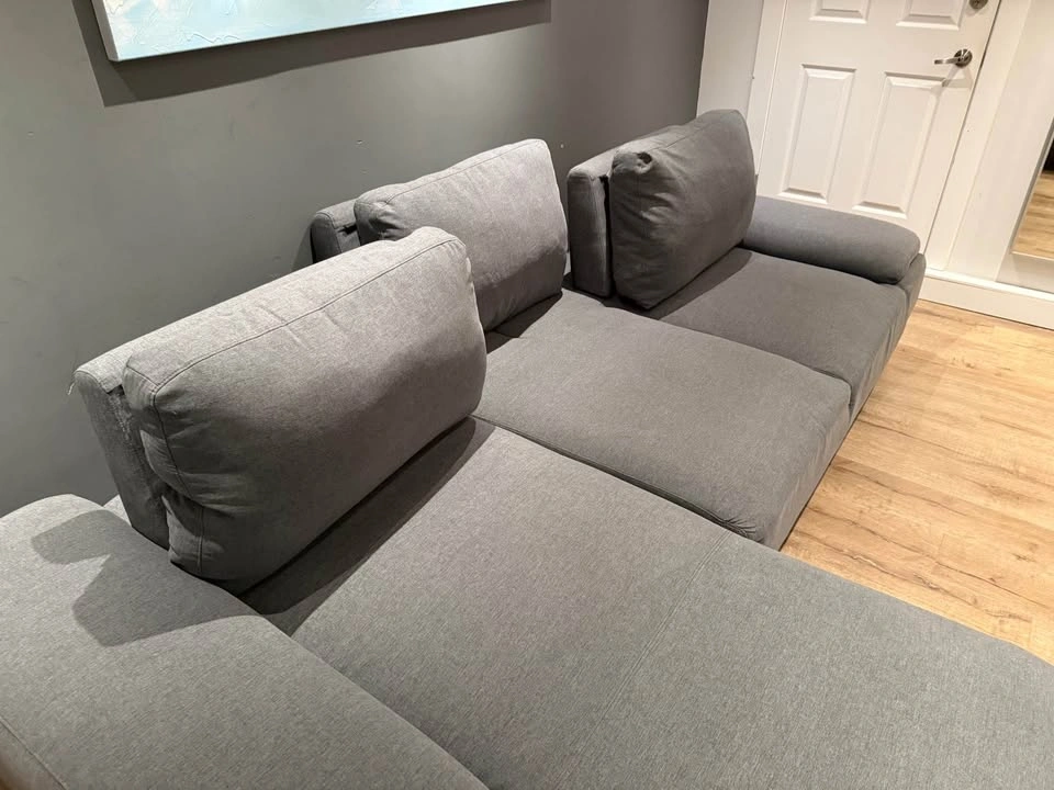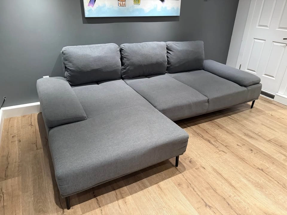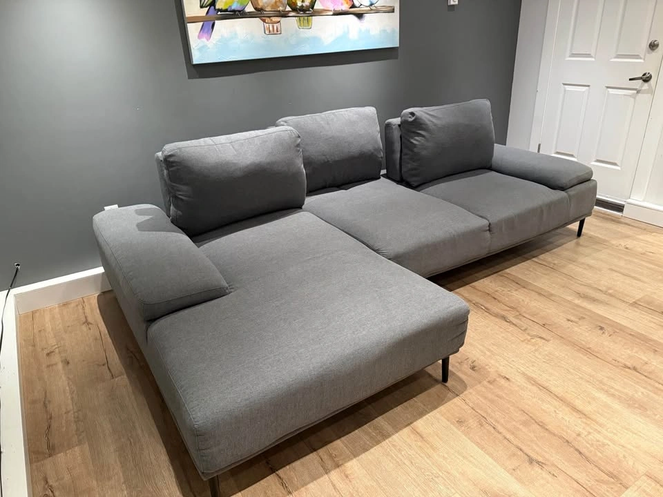 42The Structube Yanta Sectional delivers sleek modern design with adjustable backrests and headrests for fully customizable comfort. A stylish low-profile silhouette and deep, supportive seats make it an ideal centrepiece for any living space. β¨ Features: β Independent ratcheting back & headrests for personalized comfort β Deep seats and clean, modern lines β Durable woven fabric with high-density foam cushions β Metal legs with a low-profile European design β Professionally shampooed, cleaned, and sanitized β No tears, no stains, no issues β Decorative cushions not included π Dimensions (approx.): β’ Width: 114β³ β’ Chaise depth: 72β³ β’ Sofa depth: 49β³ β’ Height: Varies with adjustable backrests (low to high) π Pickup near Coquitlam Centre