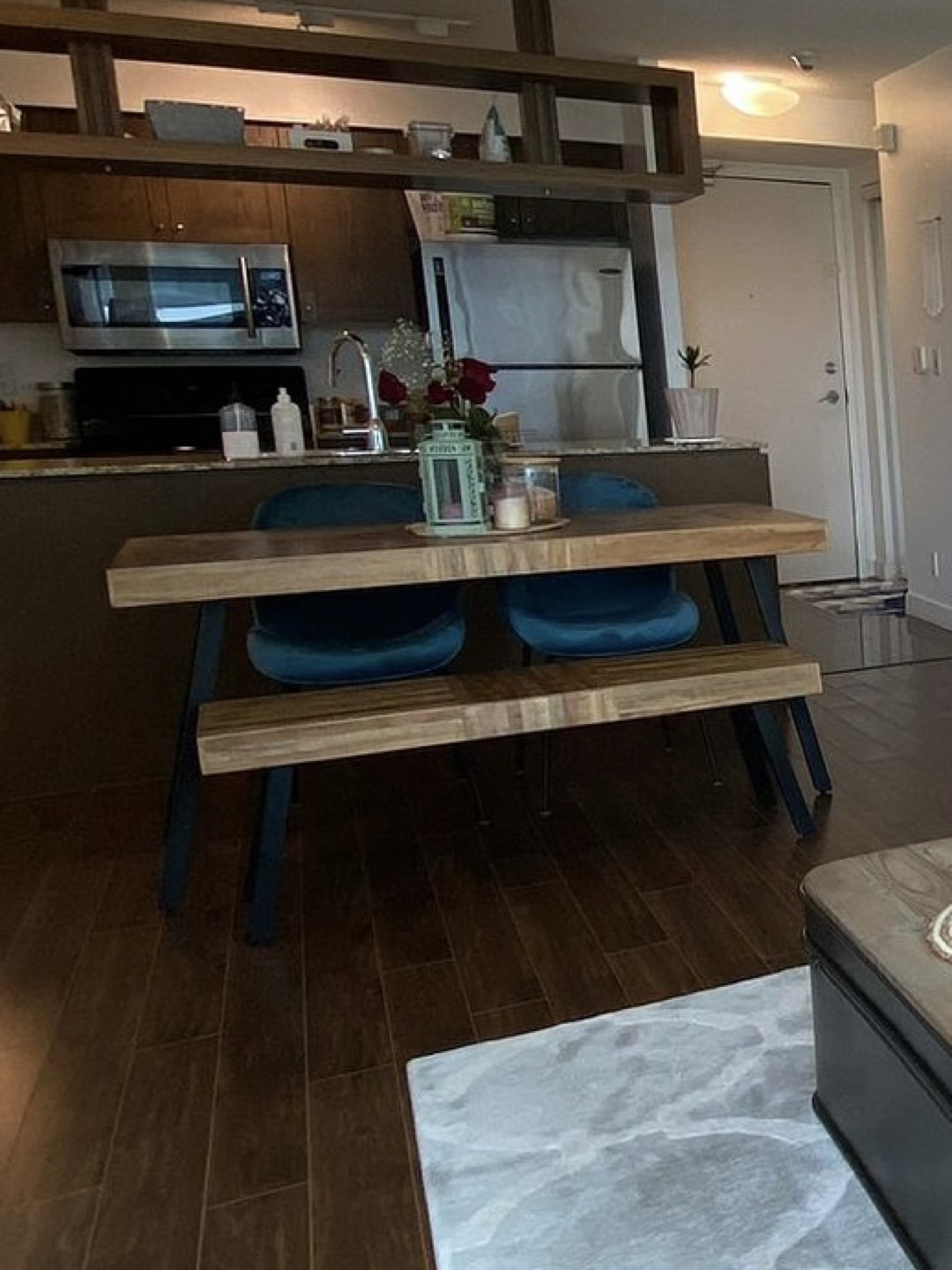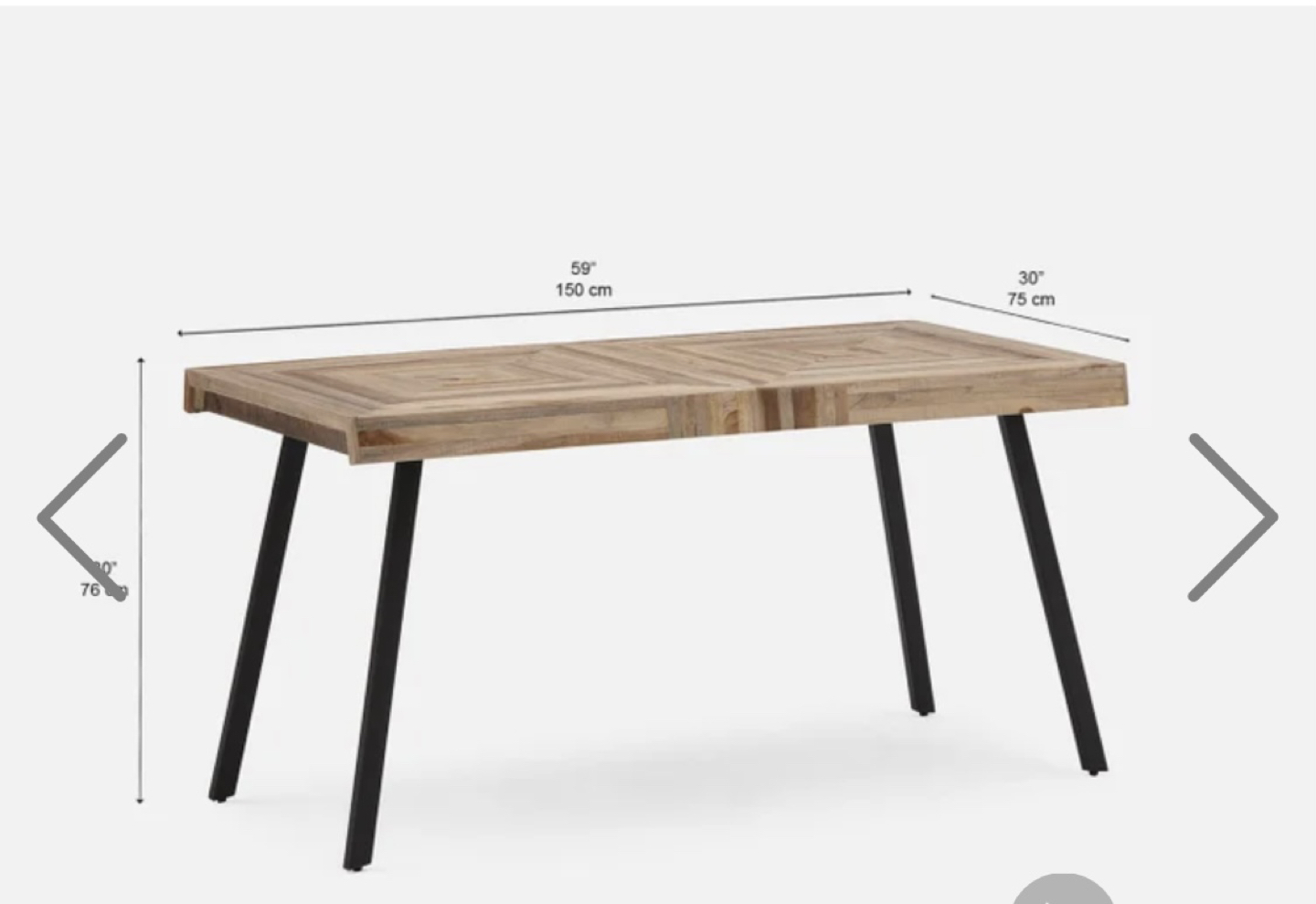 26Structube Zak Recycled Teak Dining Table. Retails for 299+tax. Very good condition. Moving out sale. Available after Sep 15. Pickup from Downtown Toronto. Product page: https://www.structube.com/en_ca/zak-recycled-teak-dining-table-150-cm-41-46-91
