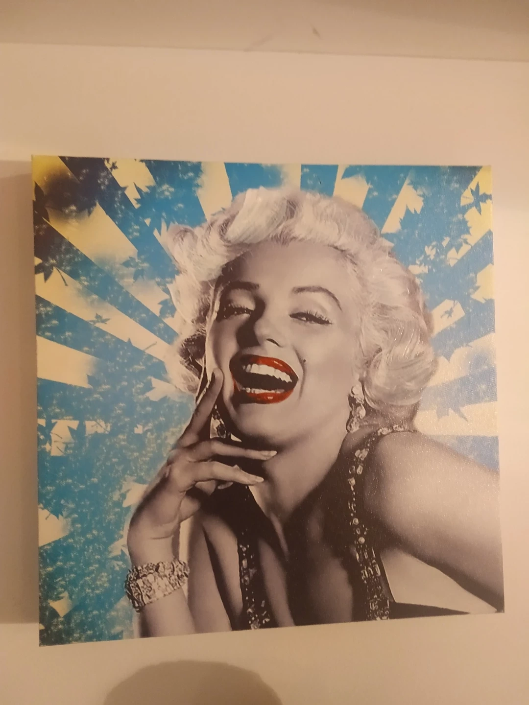 Canvas print featuring Marilyn Monroe. This artwork adds a classic touch to any room. It's perfect for fans of vintage Hollywood.