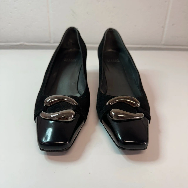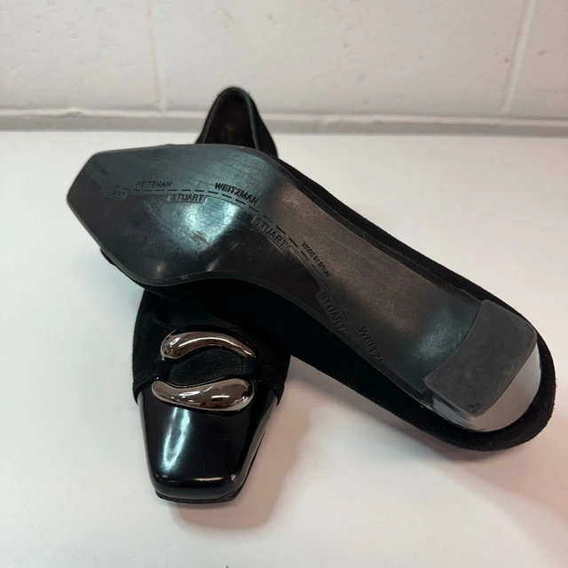 Stuart Weitzman heels, size 9, featuring a chic combination of black suede and patent leather. These elegant heels are perfect for adding a touch of sophistication to any outfit. Key Features: * Brand: Stuart Weitzman * Size: 9 * Material: Suede and patent leather * Colour: Black If the ad is up, they are still available.
