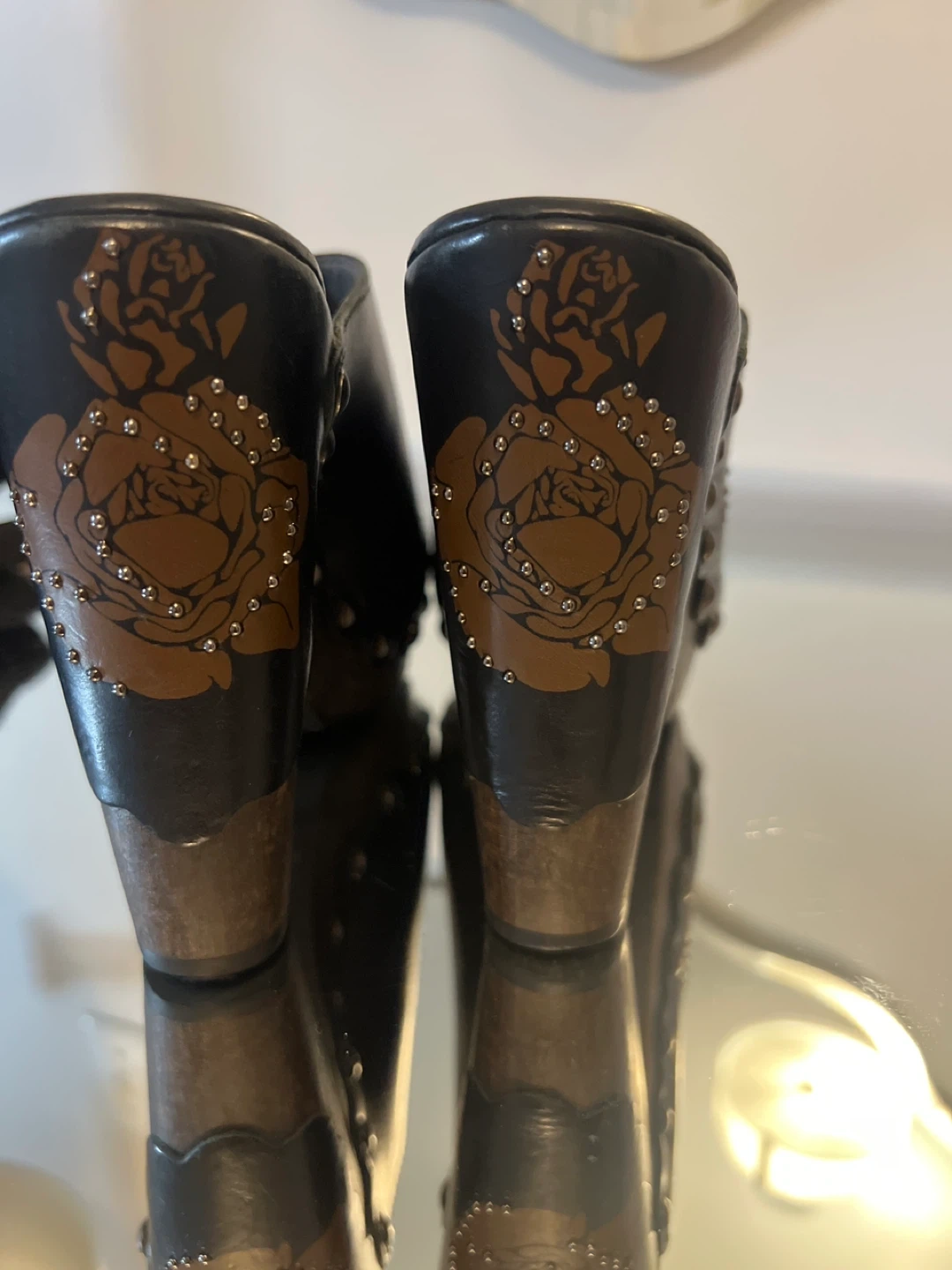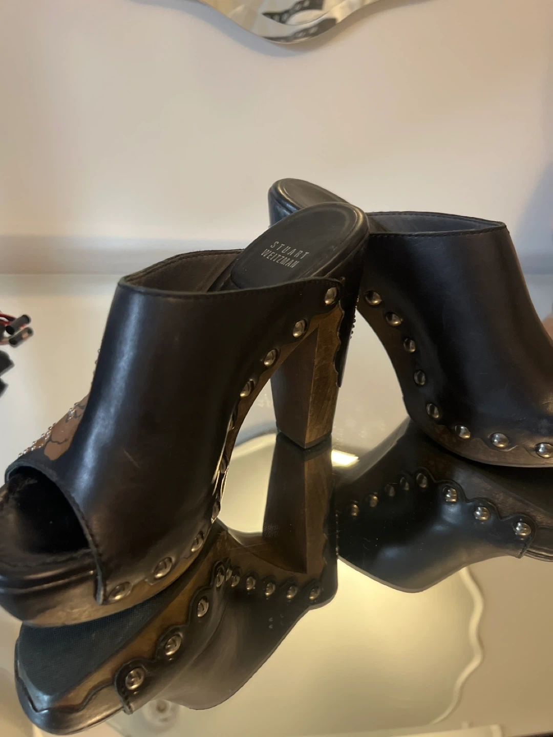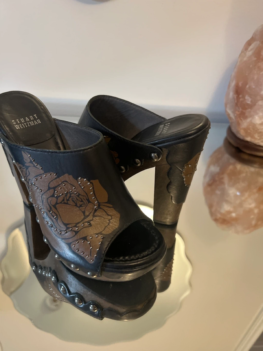 10These Stuart Weitzman clogs are in great condition and ready for a new home! They feature a unique rose design with studded detailing. Perfect for adding a touch of style to any outfit