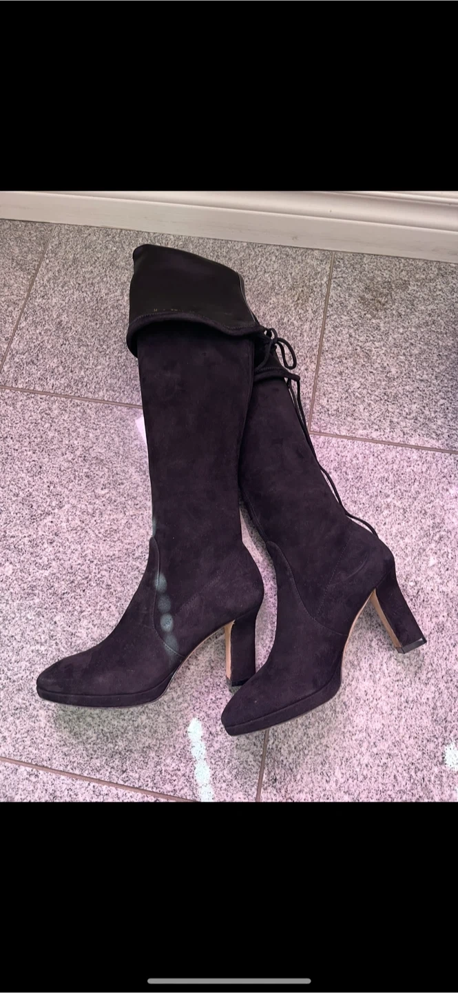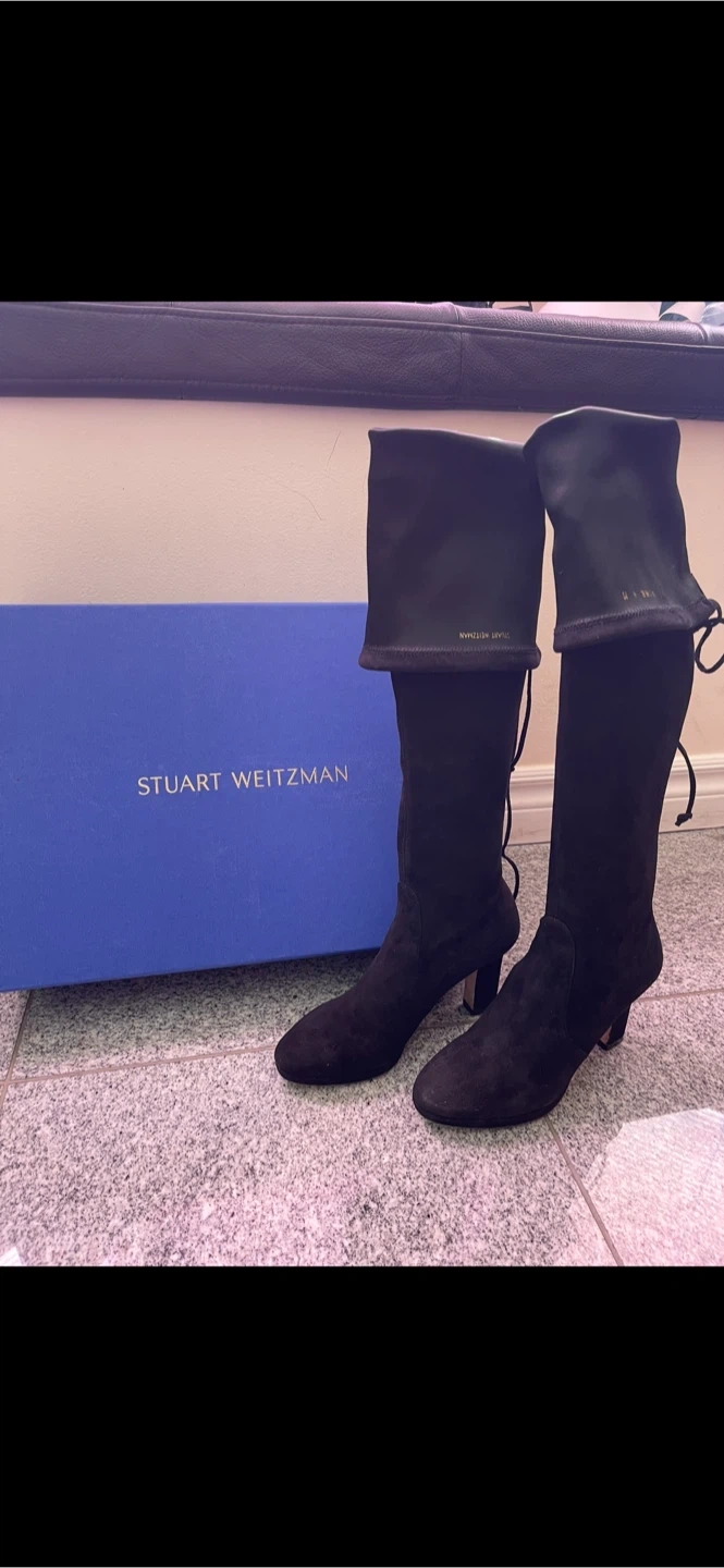 Selling a pair of Stuart Weitzman Ledyland over-the-knee boots in black suede. These are a size 4. They come with the original box!