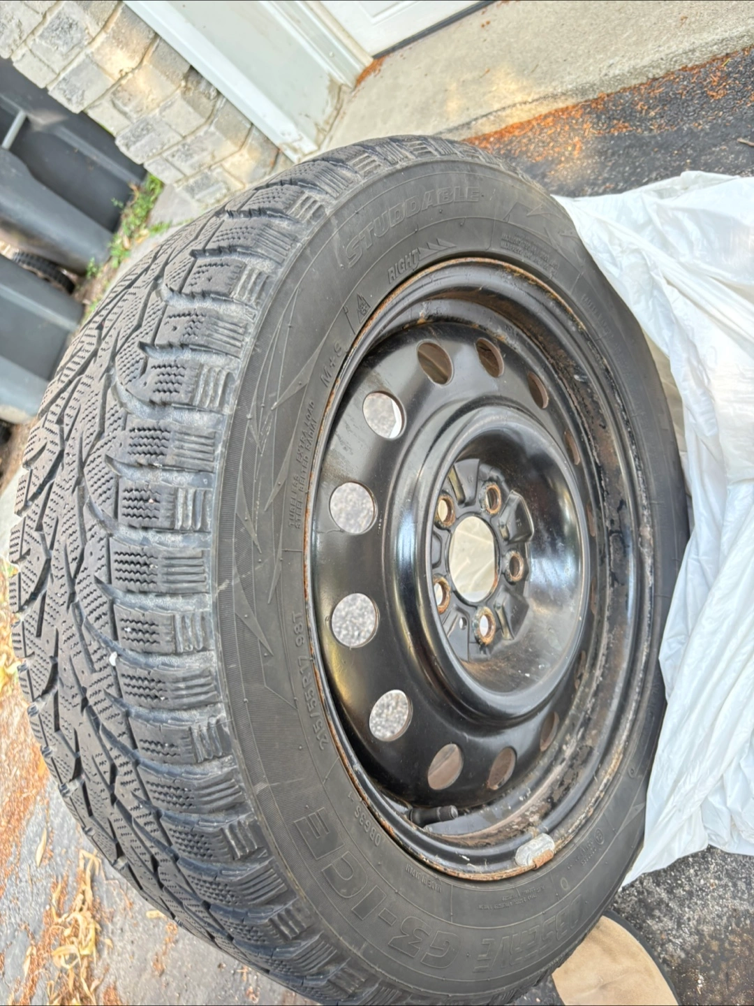 71I had a video of the tires but app wouldn’t allow me to upload… 4 Gently used 215/45R17 Studdable Observe G3-Ice winter tires for sale. Only used for one winter and barely driven, these tires are in excellent condition. Compatible with: Hyundai: Veloster, Elantra, Sonata, Tucson, Santa Fe Kia: Forte, Soul, Optima, Sportage, Seltos All tires are covered price negotiable Contact me for more information!