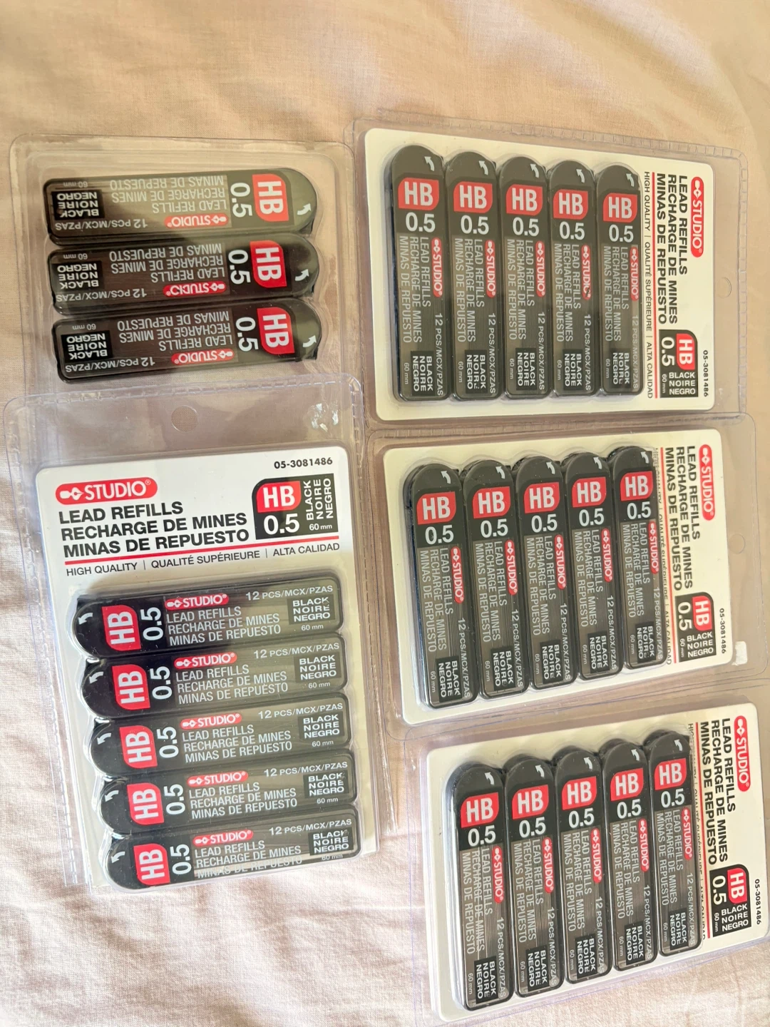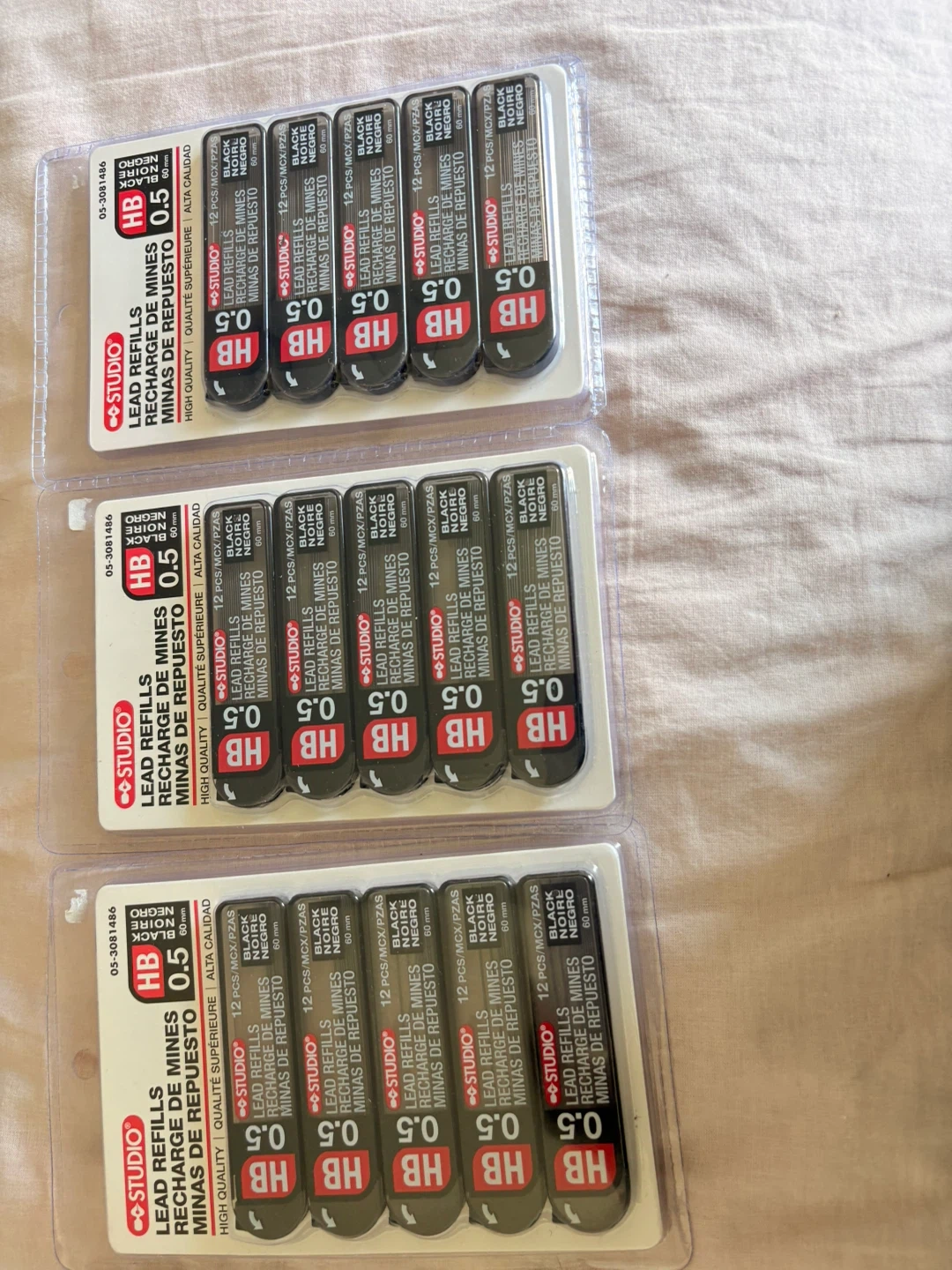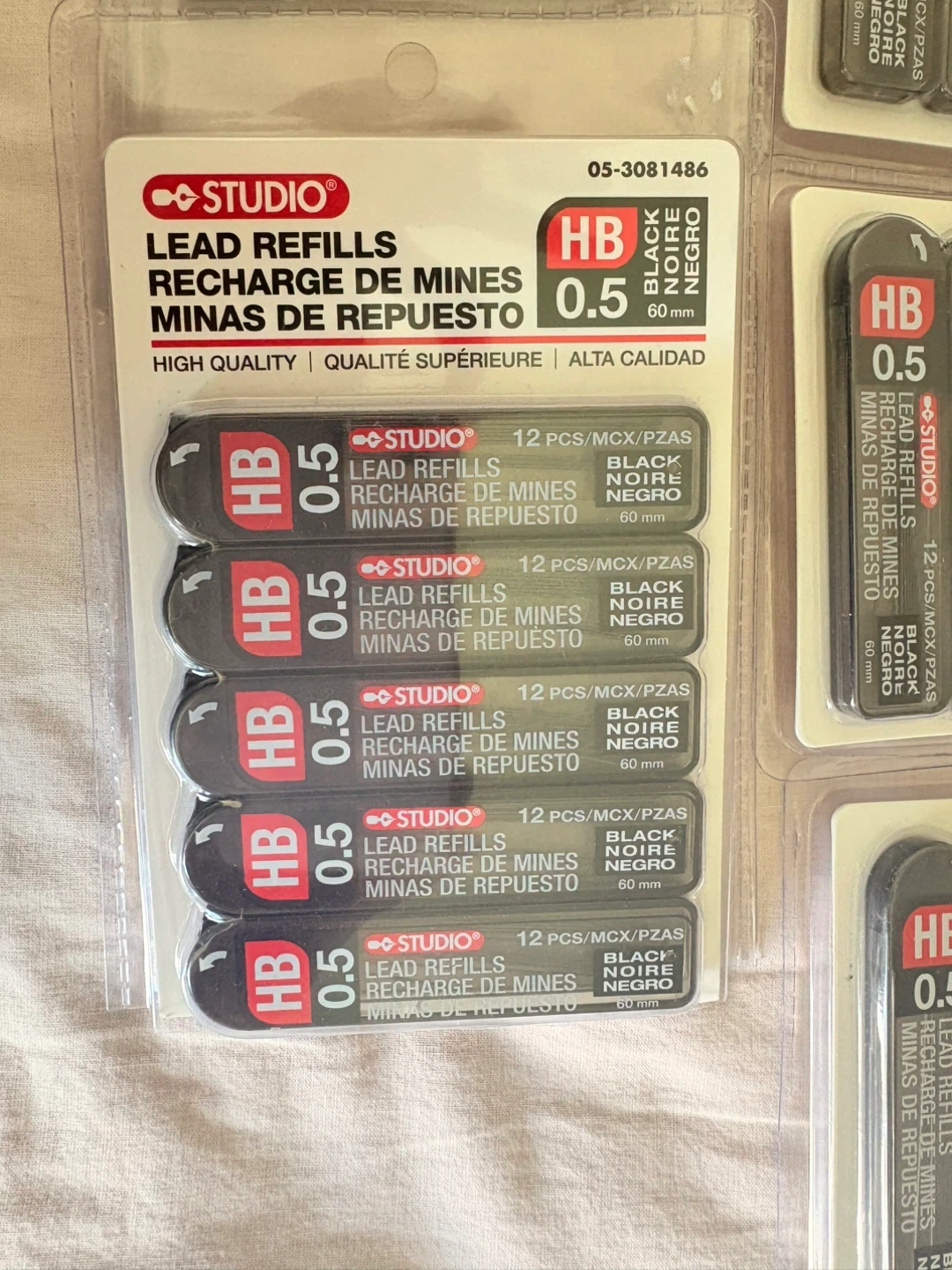 10I'm selling Studio Lead Refills! Each pack contains 12 pieces of 0.5mm HB lead refills, perfect for your mechanical pencils. They're high quality and come in black.pick up from Windermere.