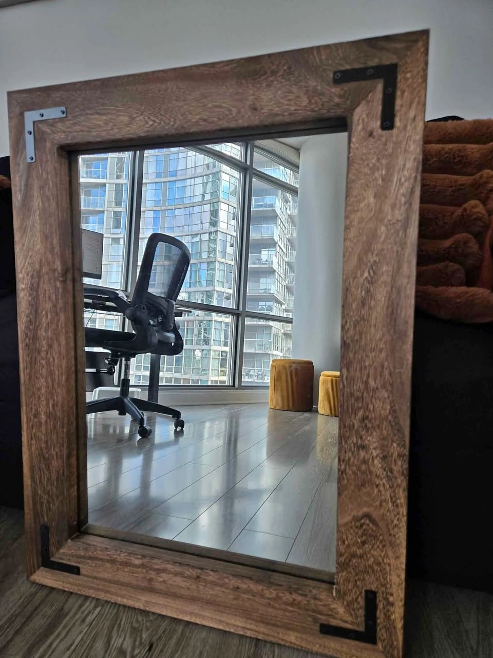 Beautiful American farmhouse-style mirror with a solid wood-look frame. Can be mounted horizontal or vertical — perfect for bathroom, bedroom, or hallway. Amazon selling it for 110 CaD plus taxes, link provided below. Excellent condition (no cracks, chips, or major wear) — it’s ready to be installed. Dimensions: 36" wide × 24" high (or vice-versa) — generous and practical. Wood-look frame: rich brown, pairs with natural textures (wood, wicker, linen) or more modern finishes. You’re buying because I have a spare — you win the deal. 💰 Asking: 90 📍 Pickup: 3 Navy Wharf Crt. Toronto, near CN Tower Adds instant elegance to any space — grab it before it’s gone! Amazon Link: https://www.amazon.ca/EMAISON-Decorative-Rectangular-Farmhouse-Bathroom/dp/B083FV3W1N/ref=pd_aw_subss_hxwPER_sspa_mw_detail_m_sccl_NaN/138-5936473-2850363?pd_rd_r=3c50e826-8247-42d7-b9fa-89e6d70ddc64&pd_rd_wg=Fvxwg&pd_rd_w=s1vFB&pd_rd_i=B083FV3W1N&psc=1
