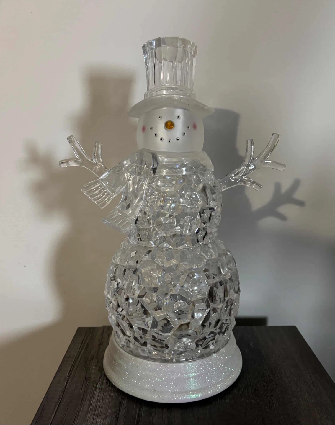 102Includes Batteries✨Gorgeous Glow Effect☃️Add pure Christmas magic to your home with this absolutely beautiful crystal snowman light décor piece! This looks breathtaking in person — the entire body lights up with vibrant colours that dance across the walls, creating the coziest, most magical winter vibe. Whether it’s for your living room, entryway, holiday photo backdrop, or Christmas party setup, this piece gets SO many compliments. It looks just as stunning turned off — like a high-end winter crystal sculpture — and even better when lit up.