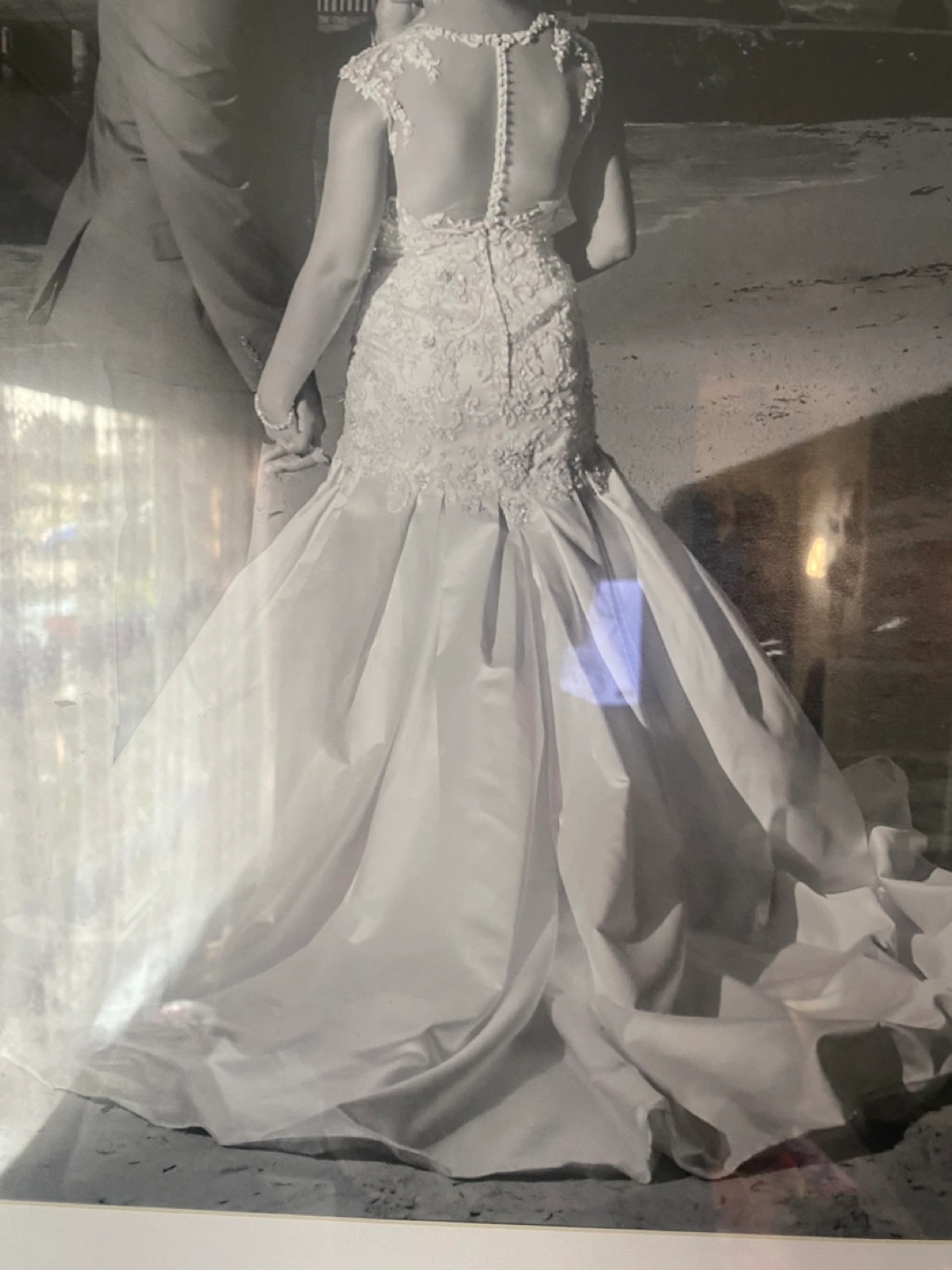182Wedding dress Very beautiful wedding dress like brand new Has a beautiful design on the top and beads with a long halo stain bottom. Very beautiful Size : S/M - 8 -10 $600 cash Intersection: Weston road and finch Please call me or text me 647 821 6061 Must pick up!