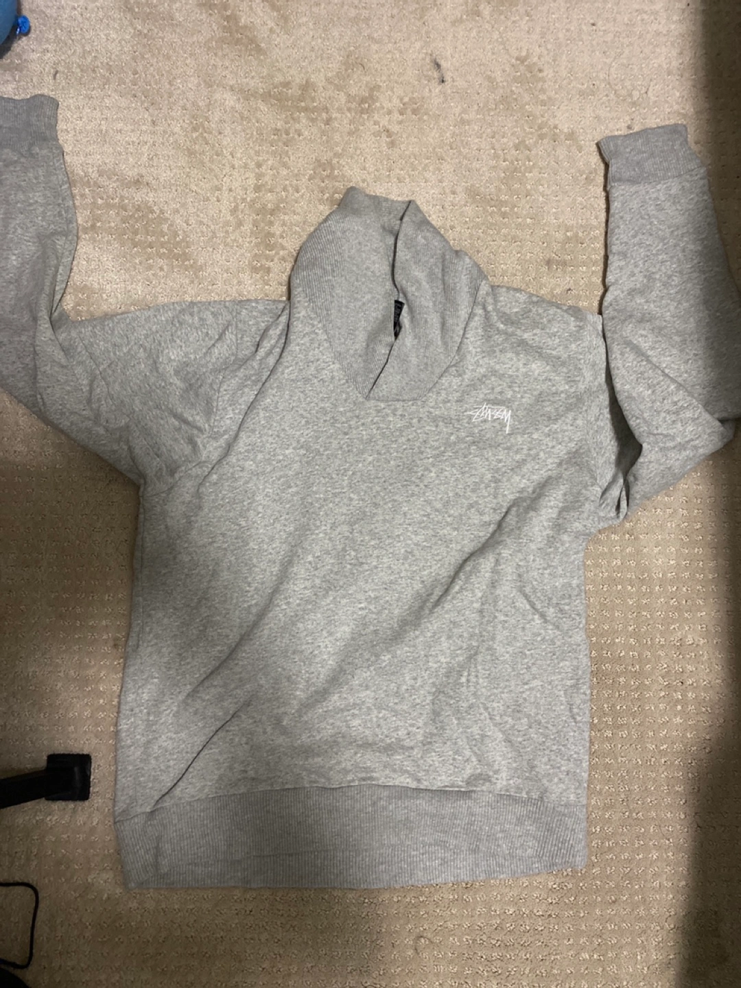 Selling a Stussy sweatshirt in grey. It's in great condition and ready for a new home! The material is soft and comfortable, perfect for everyday wear.