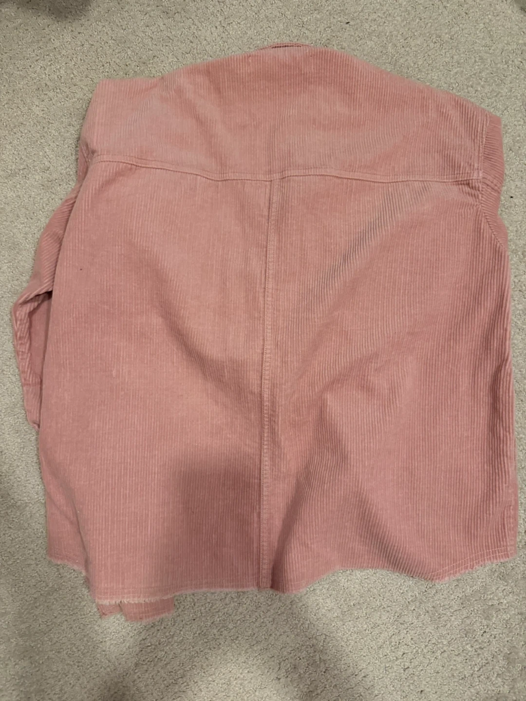 It's a ZARA pink corduroy shirt jacket with two chest pockets. Made from soft corduroy material. This oversized jacket is great for layering in cooler weather!