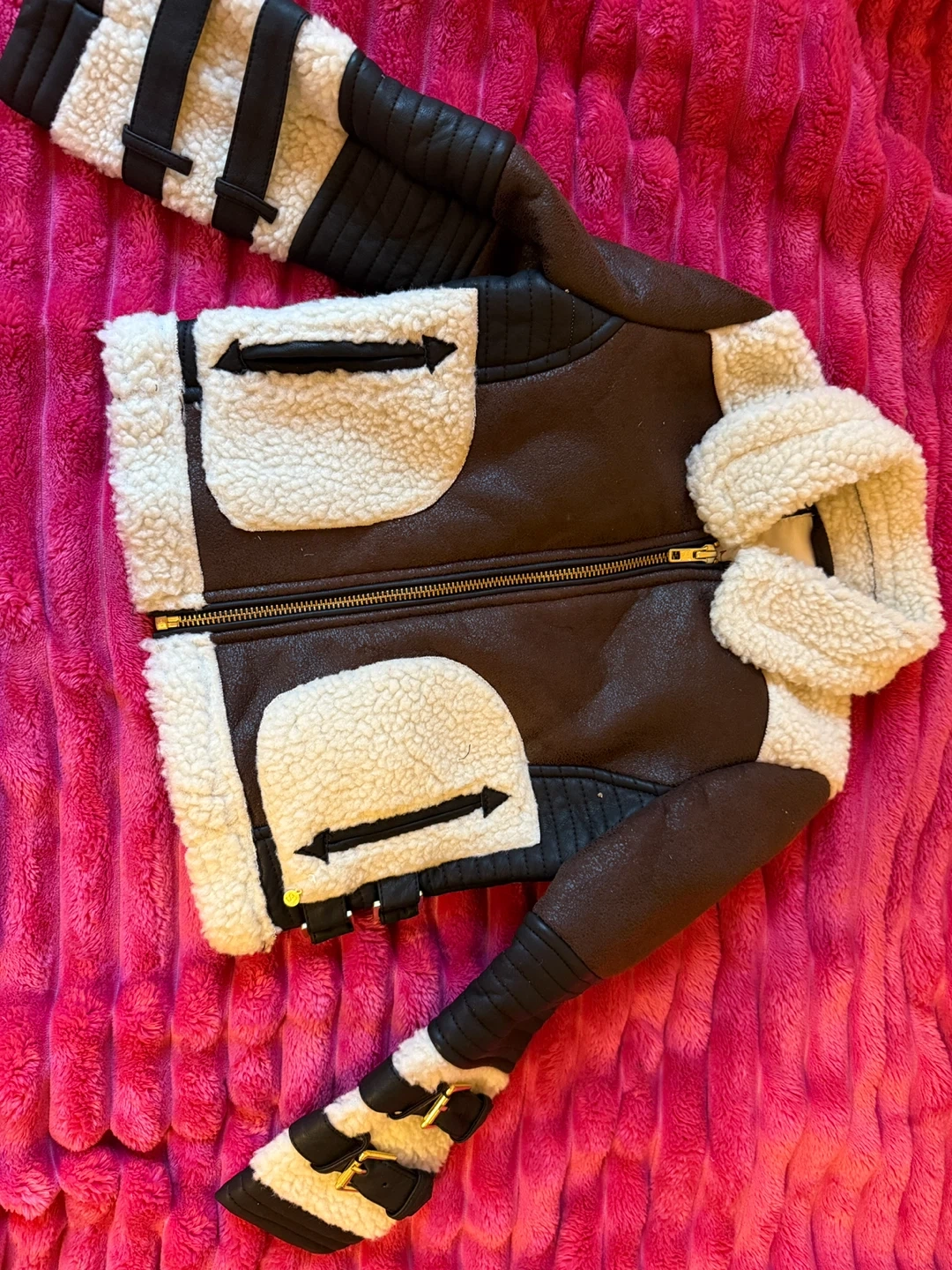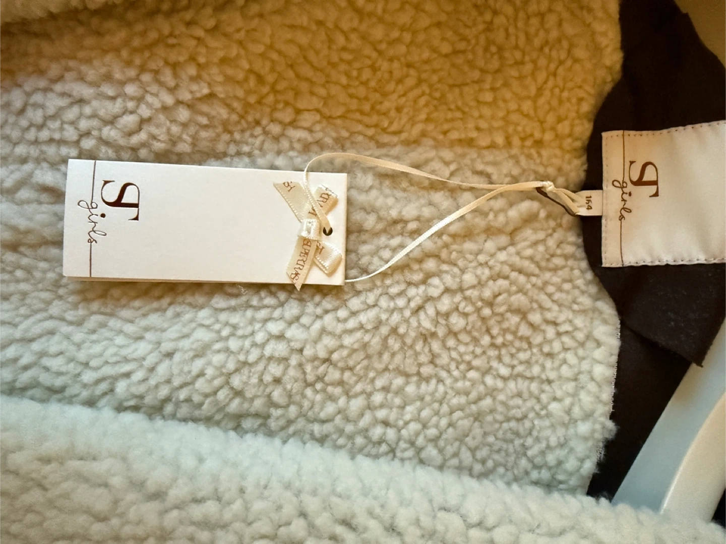 46New with tag on very nice warm fashion stylish jacket for little girl , nice dark brown colour Full price was $209 US Selling for $105 cad Sizes are 104cm, 116cm, 164cm