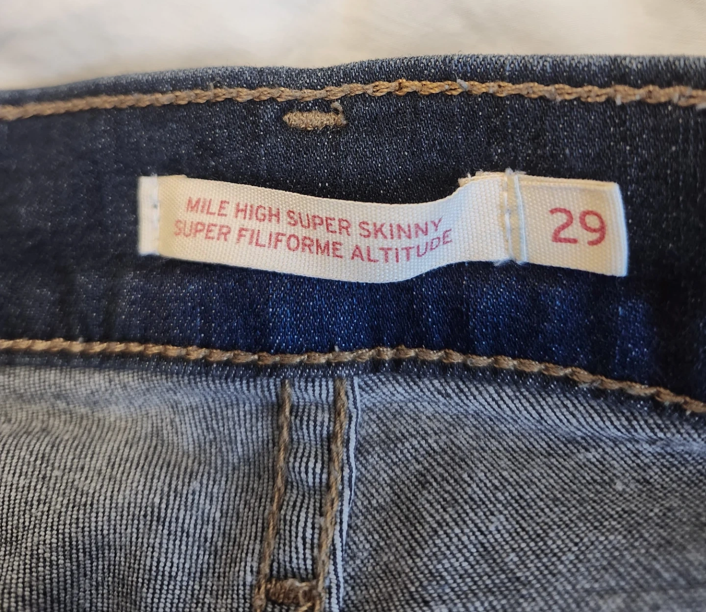 • Levi’s Mile High Super Skinny denim — ultra high rise, figure‑enhancing fit