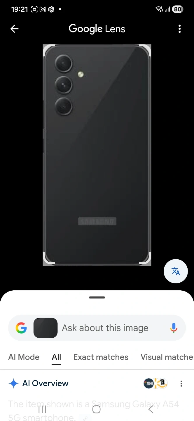 A Samsung Galaxy A54 5G smartphone in grey. Features a triple camera system and a vibrant display. Great for everyday use and photography!