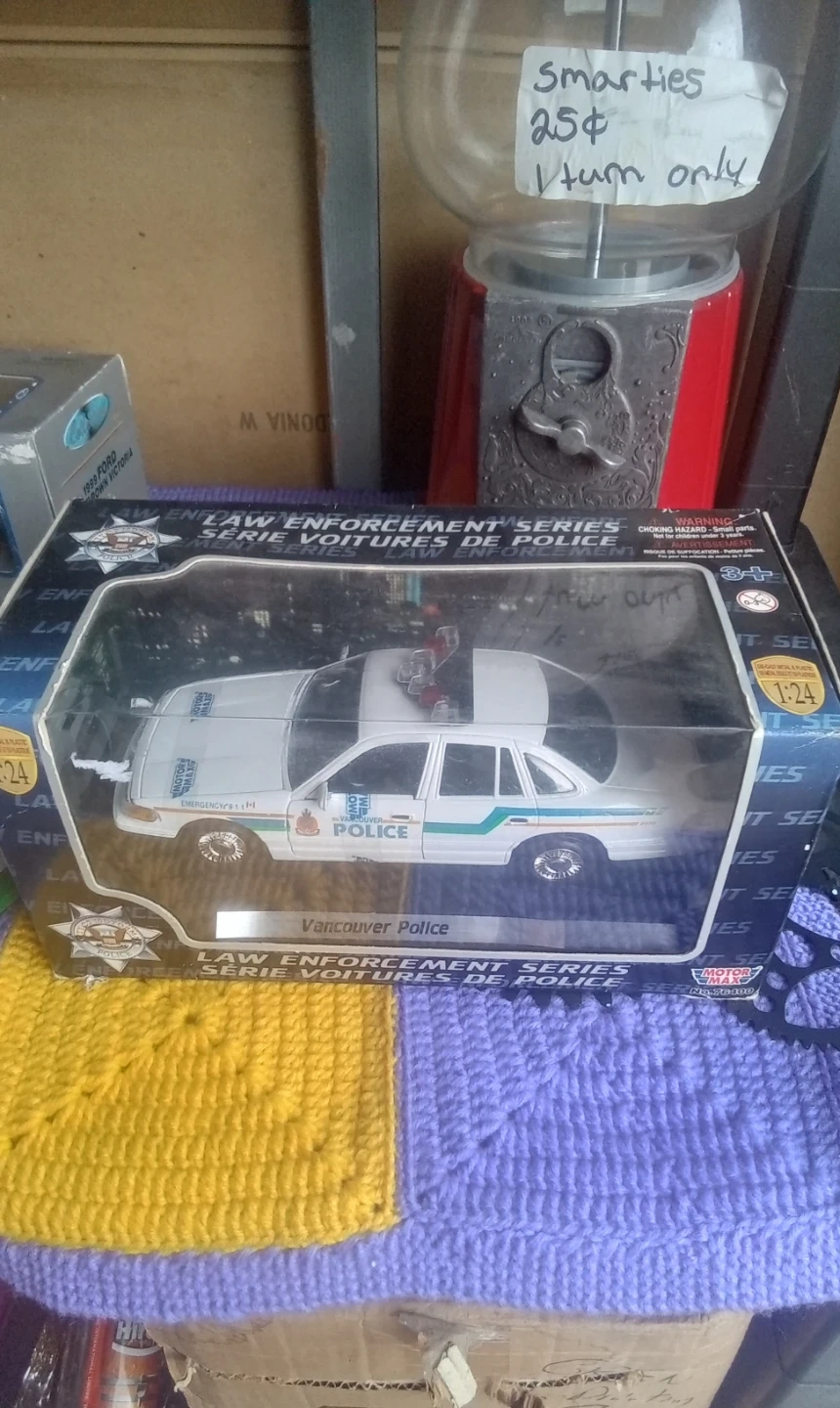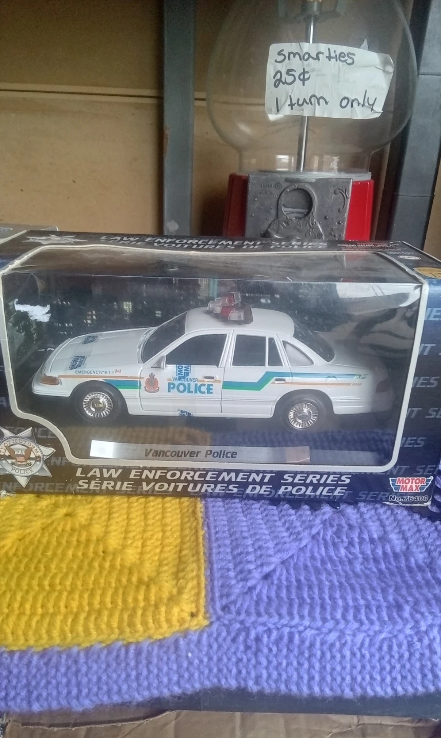This is a 1:24 scale model of a Vancouver Police car from the Law Enforcement Series. It features realistic details and comes in its original packaging. A great collectible for car enthusiasts or fans of law enforcement memorabilia.