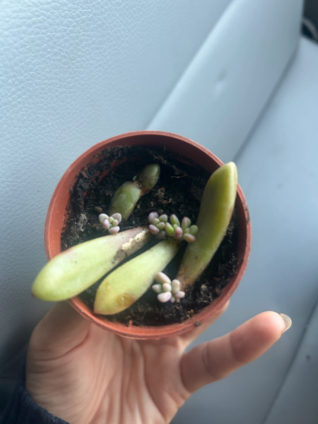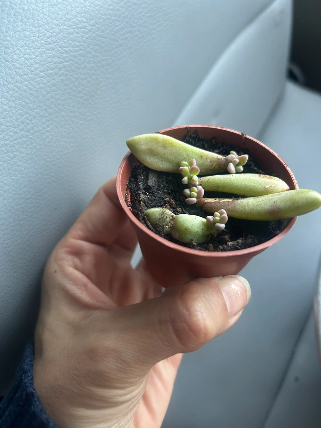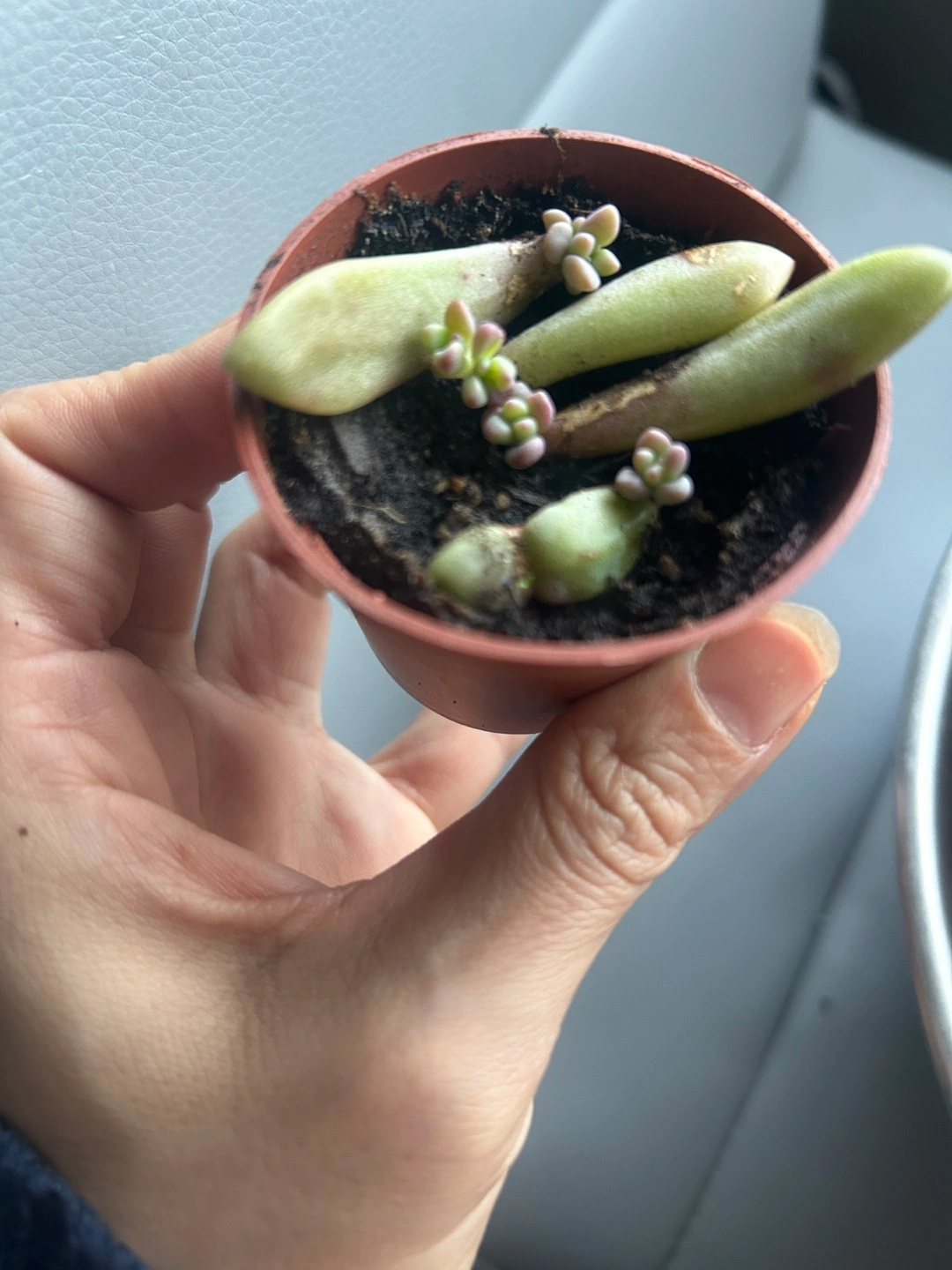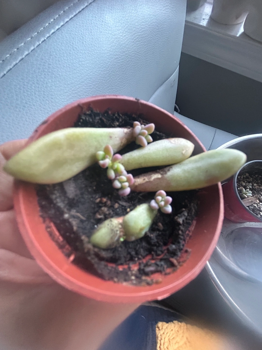 81Small potted succulent propagation. Several healthy leaves with babies growing. Perfect for plant lovers. Easy to care for.