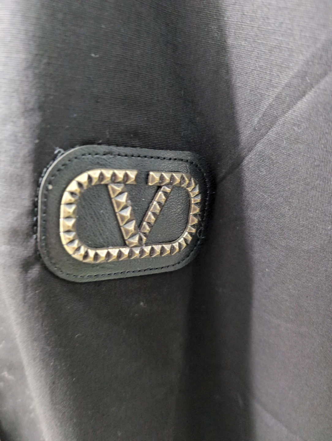 Here's a stylish Valentino black shirt, size large! It features a cool studded collar and the Valentino logo on the chest. Perfect for adding a bit of edge to your wardrobe!