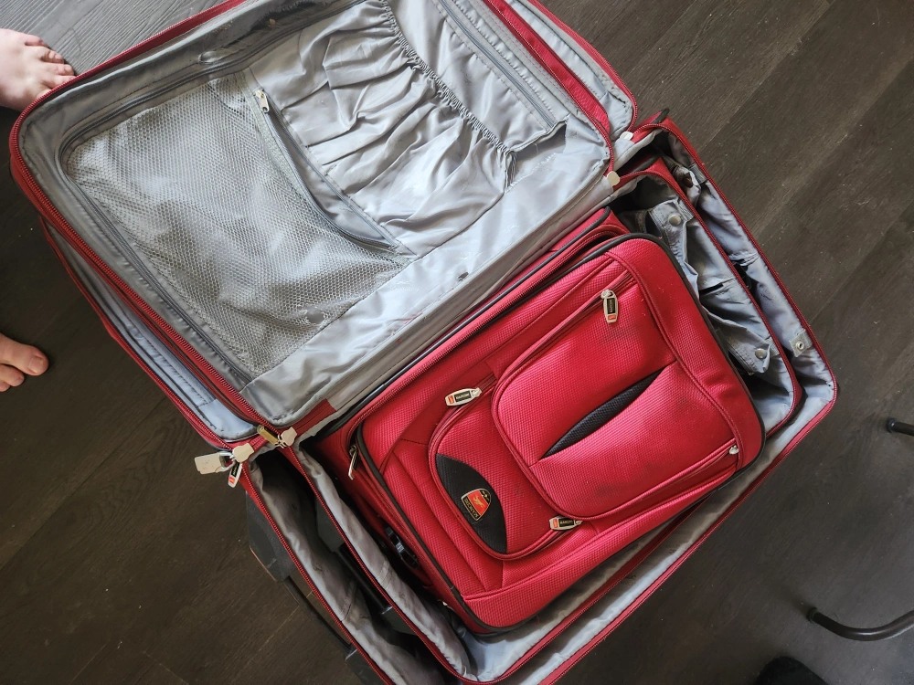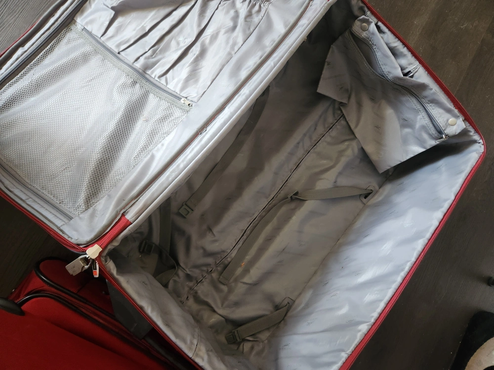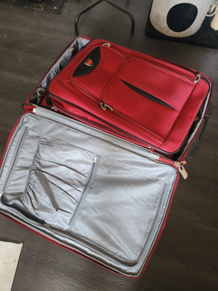 Red Heys suitcase in good condition! It's a great travel companion for your next trip. The suitcase has some signs of use but is still fully functional and ready for more adventures