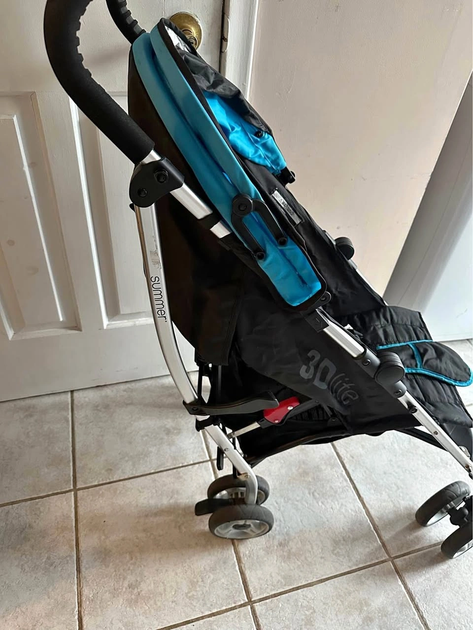 65Very good stroller for travel and infant stage. It has been gently used and has a little rip on the top (see photo), that’s the only damage.