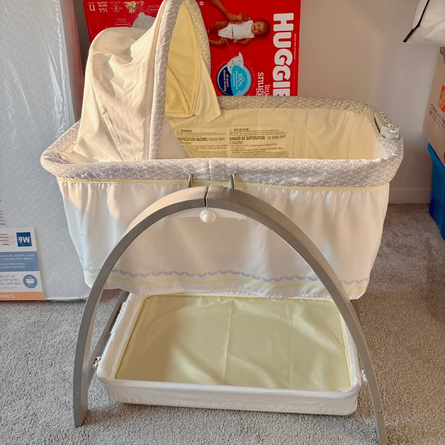 Excellent working condition This bassinet has a multi-speed silent sway motion and it’s in excellent working condition. It also has peaceful melodies, calming sounds and soothing vibrations help to lull baby to sleep. Pick up in Rockland park NW, near Home Depot on Nose Hill Dr