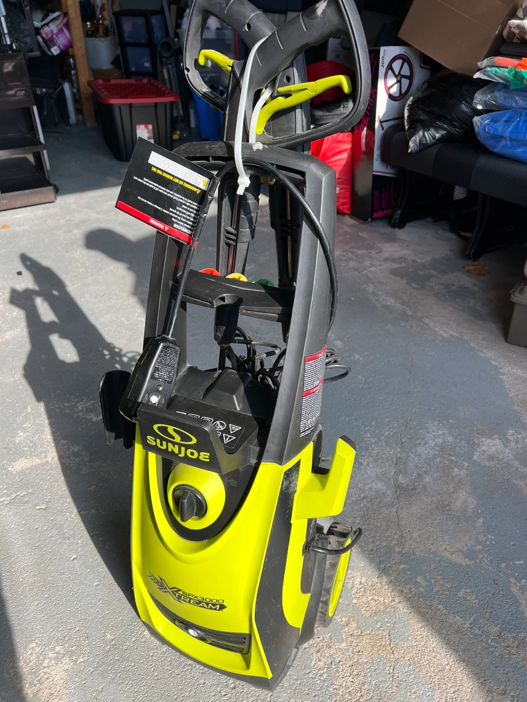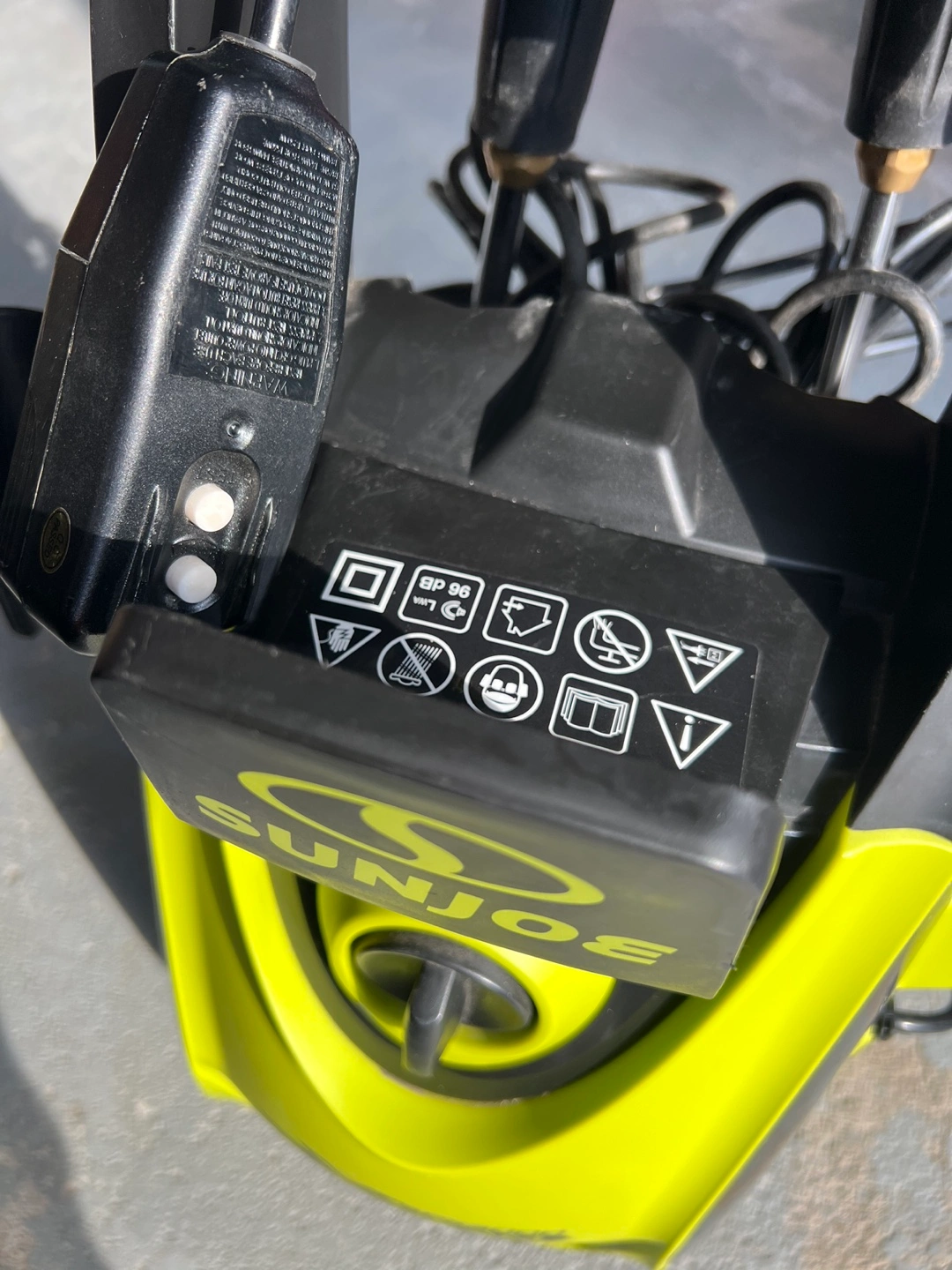 262Electric pressure washer, green and black. Includes a hose, wand, and nozzle. • XTREAM Triple-Action Power: Xtream Foaming, Xtream Cleaning and Xtream Rinsing help you win the war on the grime! • XTREAM Rinsing: Powerful 13-amp motor generates up to 2200 PSI (at initial discharge per CSA internal pressure testing) of pressure and 1.65 GPM (with nozzle open at minimum pressure) of flow ) to rinse all the dirt away • XTREAM Foaming: onboard 33.8 fl oz foam cannon aerates detergent and shoots it up to 15 feet to give your cleaning blast a boost • XTREAM Cleaning: 4 quick-connect nozzles (0°, 15°, 25°, 40°) in a range of spray patterns from pin-point jet to fan spray tackle heavy, medium and light duty jobs • TSS (Total Stop System) Technology: automatically shuts off the pump when trigger is not engaged to save energy and prolong pump life • Includes: 34-inch spray wand with stainless steel lance, 20-foot high pressure hose, 35-foot power cord with GFCI protection, garden hose adapter, needle clean-out tool • Lightweight + portable: only 27.6 lbs (weight without accessories) and wheels easily from one cleaning task to the next