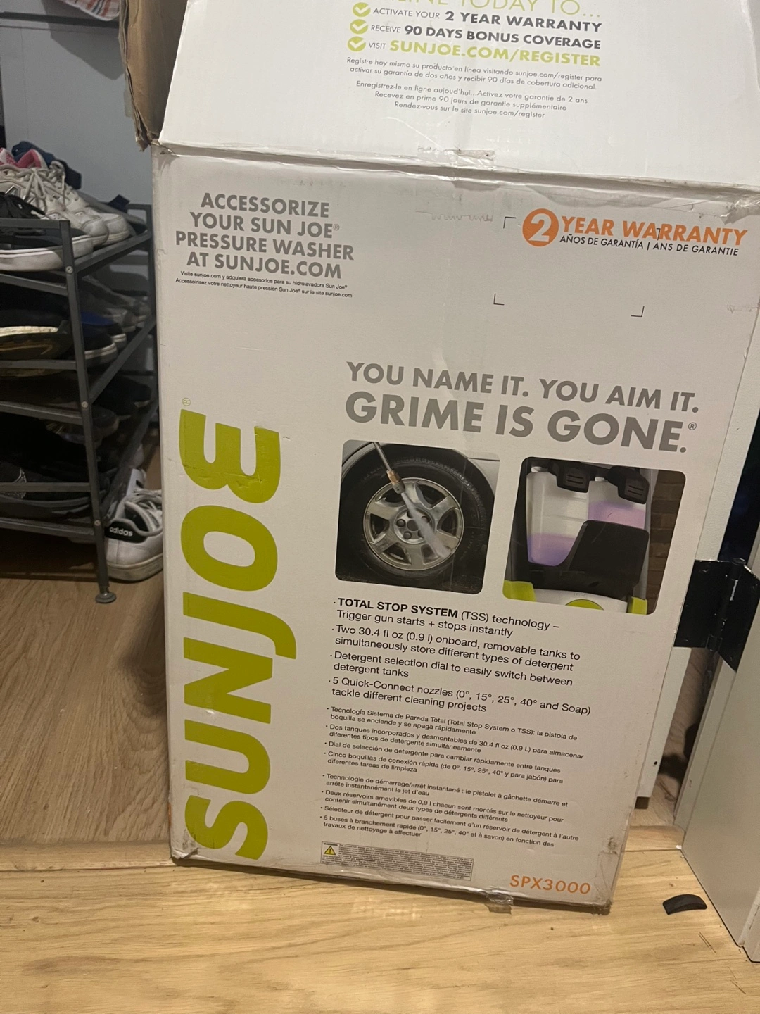 Sun Joe 2030-PSI 1.76-gallon GPM Cold Water Electric Pressure Washer Model: SPX3000 Only used twice. Great condition! Pick up only