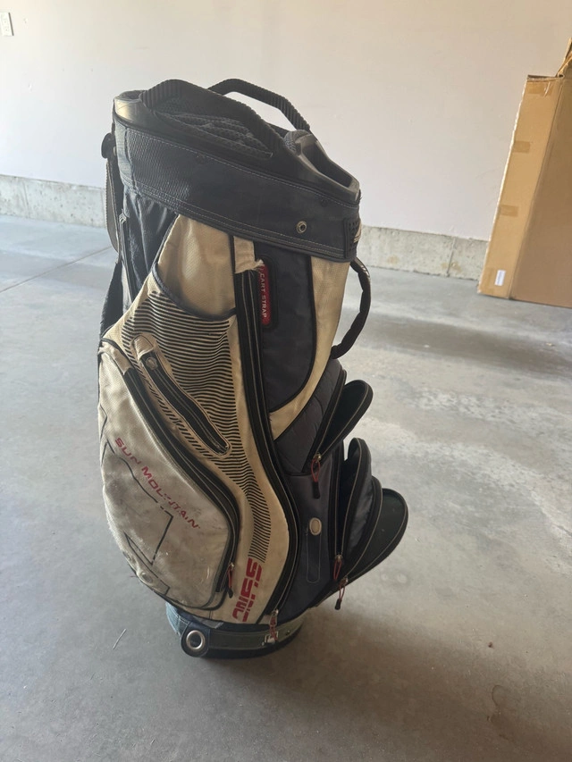 10Older Sun Mountain cart bag, well-used but fully functional — perfect for a new golfer who wants a reliable bag without breaking the bank. • Full-length club dividers • Multiple zippered storage pockets • Easy-lift handles and stable base • Signs of wear, but bad damage Great value for someone starting out in golf. For Sale By: Owner