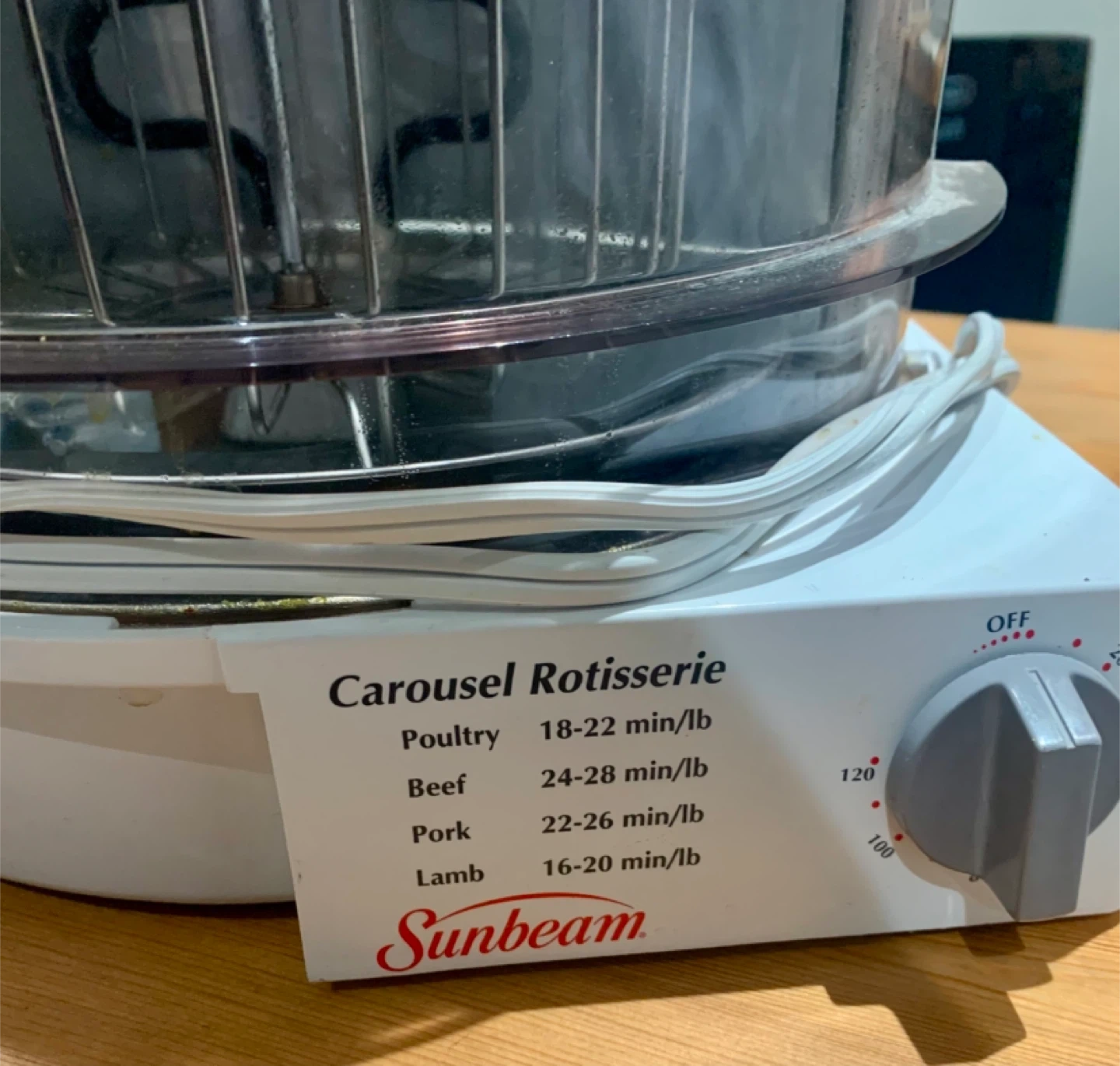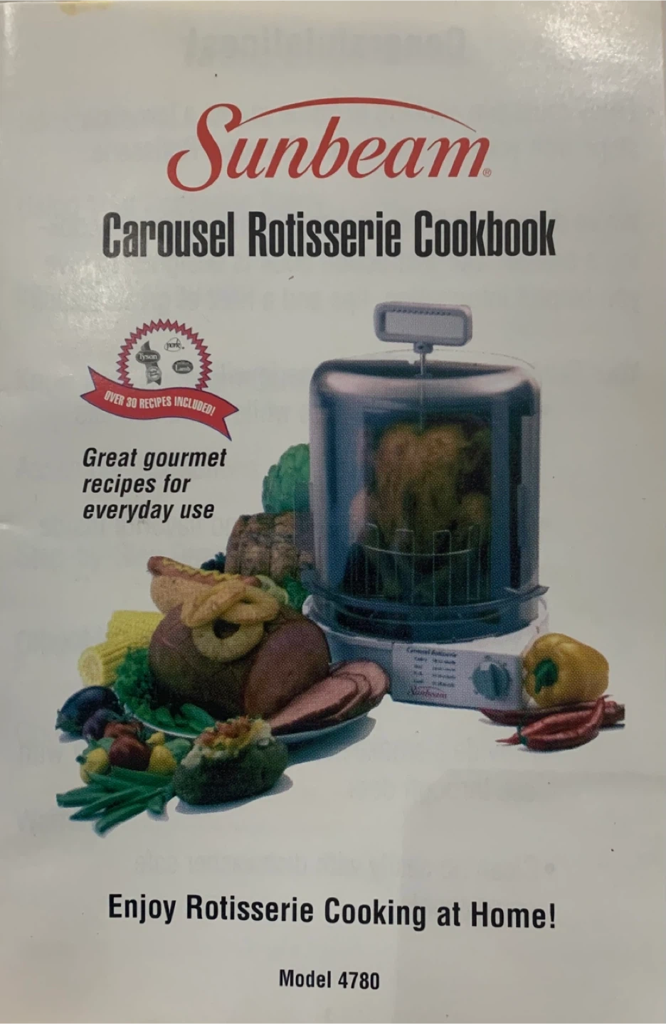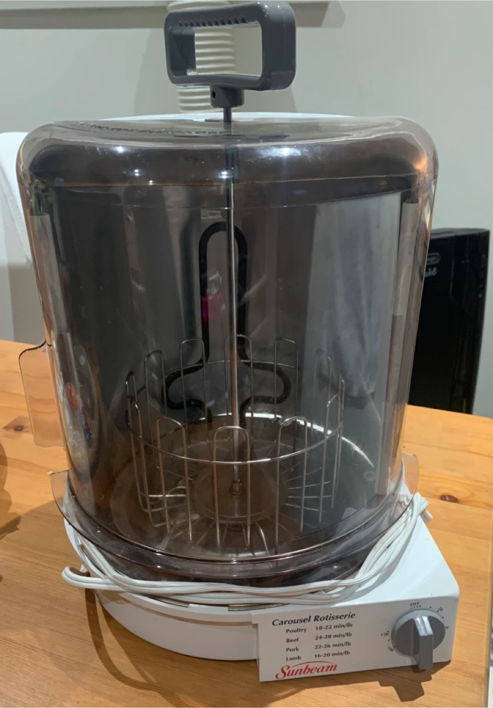 Selling a Sunbeam Carousel Rotisserie, model 4780. It's perfect for cooking poultry, beef, pork, and lamb. The included cookbook has over 30 recipes to enjoy rotisserie cooking at home. No delivery, pick up only.