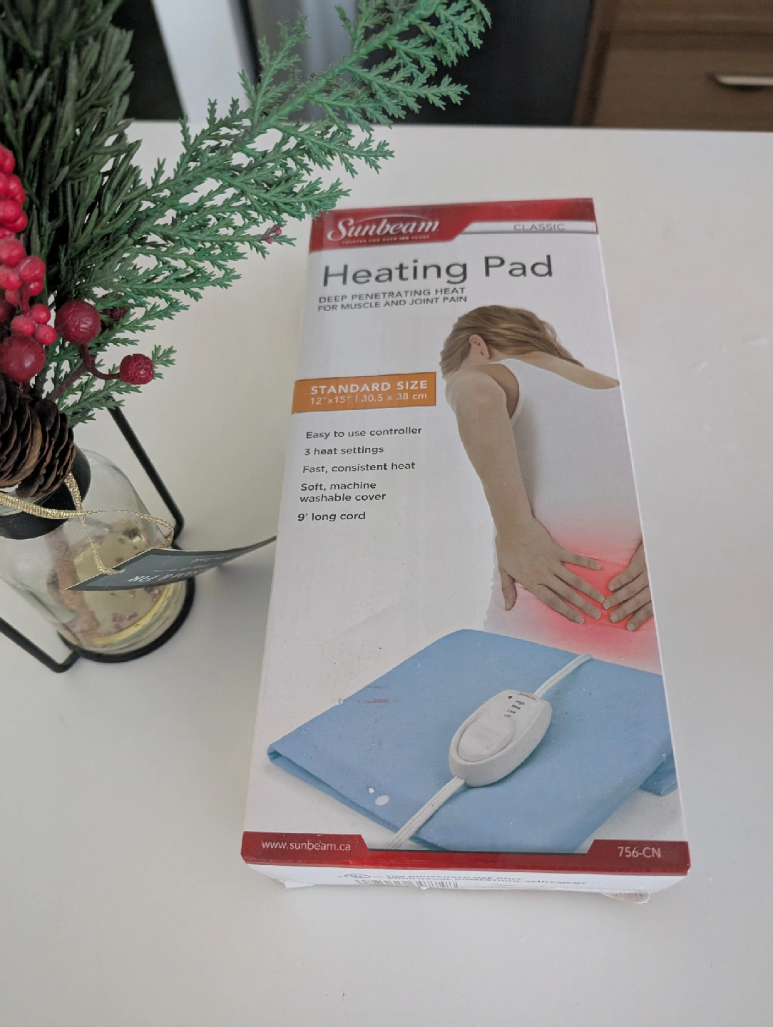 I'm selling a Sunbeam Classic Heating Pad! It's perfect for deep penetrating heat for muscle and joint pain. - Standard size: 12 in x 15 in / 30.5 x 38 cm - Easy to use controller with 3 heat settings - Fast, consistent heat - Soft, machine washable cover - 9' long cord Cash pickup only Richmond CF Centre
