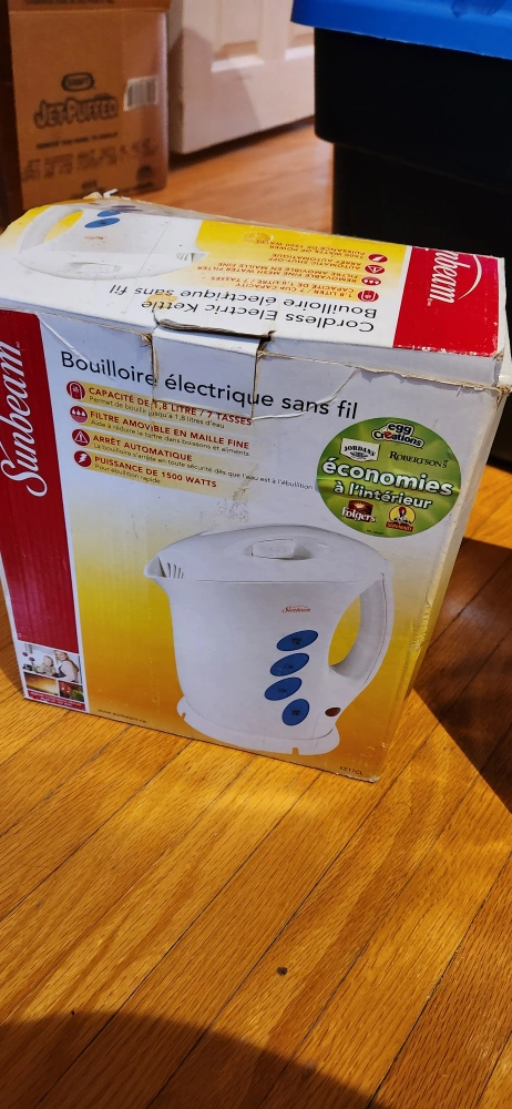 70White cordless electric kettle. 1.8 litre/7 cups capacity. Removable fine mesh filter. Automatic shut off. 1500 watts.