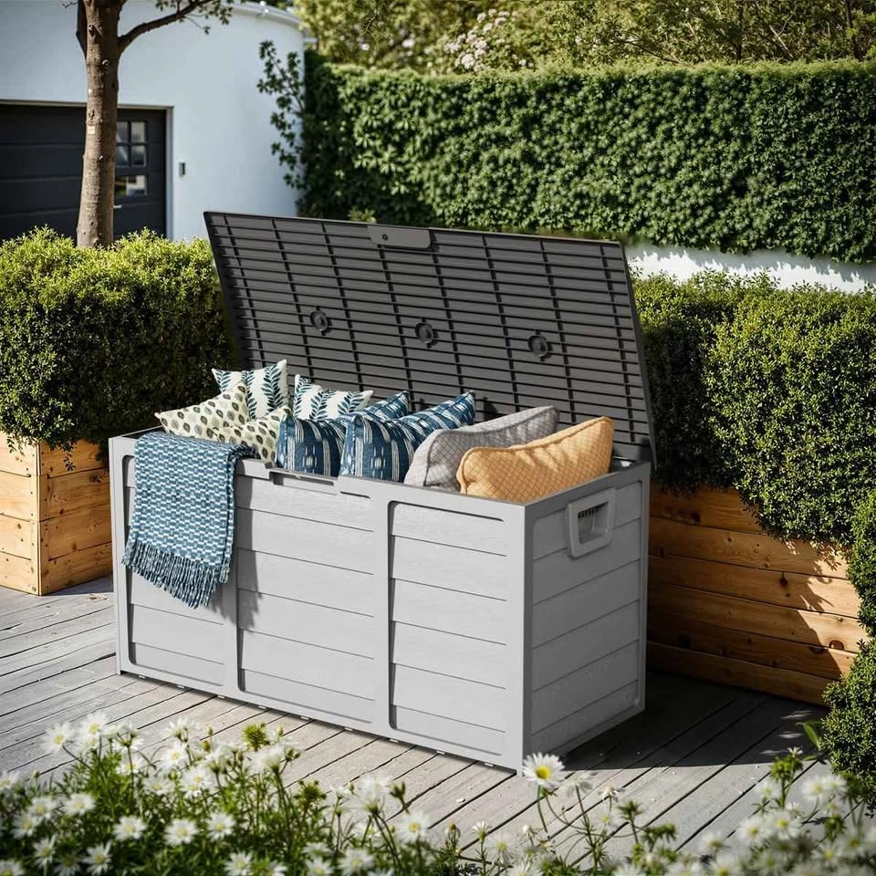 15The waterproof storage box is made of weather-resistant resin, which can prevent fading, rust, peeling and dents. The imitation wood grain surface pattern adds a touch of elegance to any space. It is more durable than wood and can also prevent deformation after being exposed to the sun. Number F16