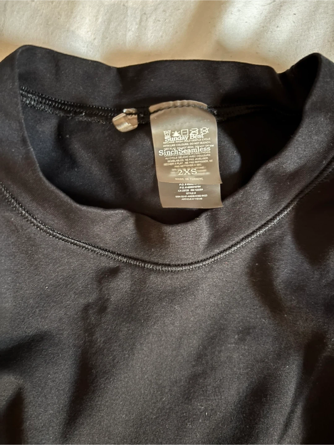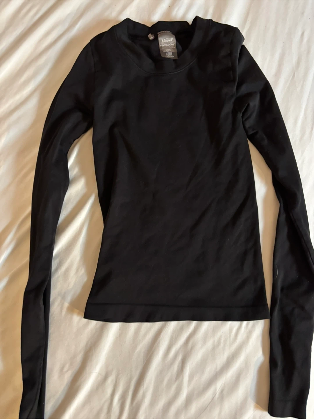 17Black long sleeve shirt woman’s size 2xs but can fit a small or medium very stretchy fabric