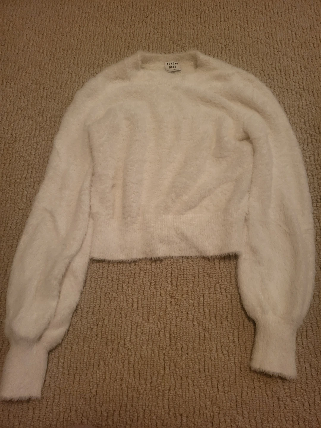Cozy up in this super soft and fuzzy white sweater from Sunday Best! It's an XS and in great condition, ready to keep you warm and stylish