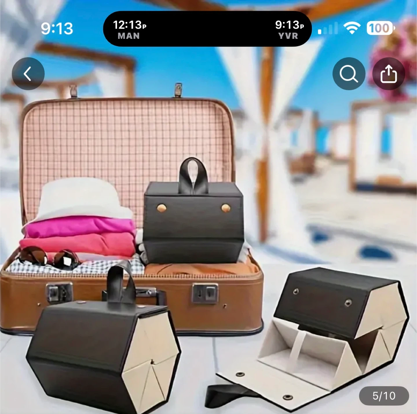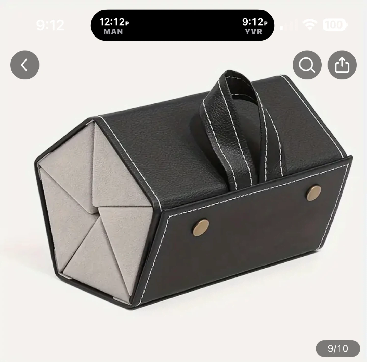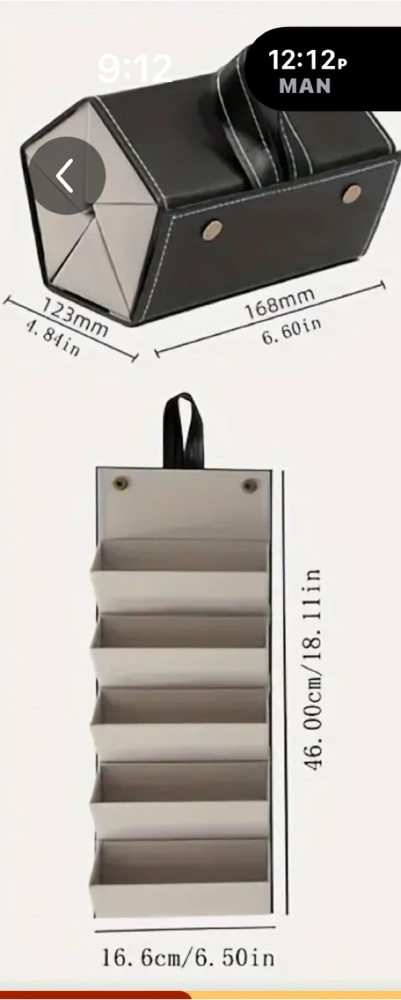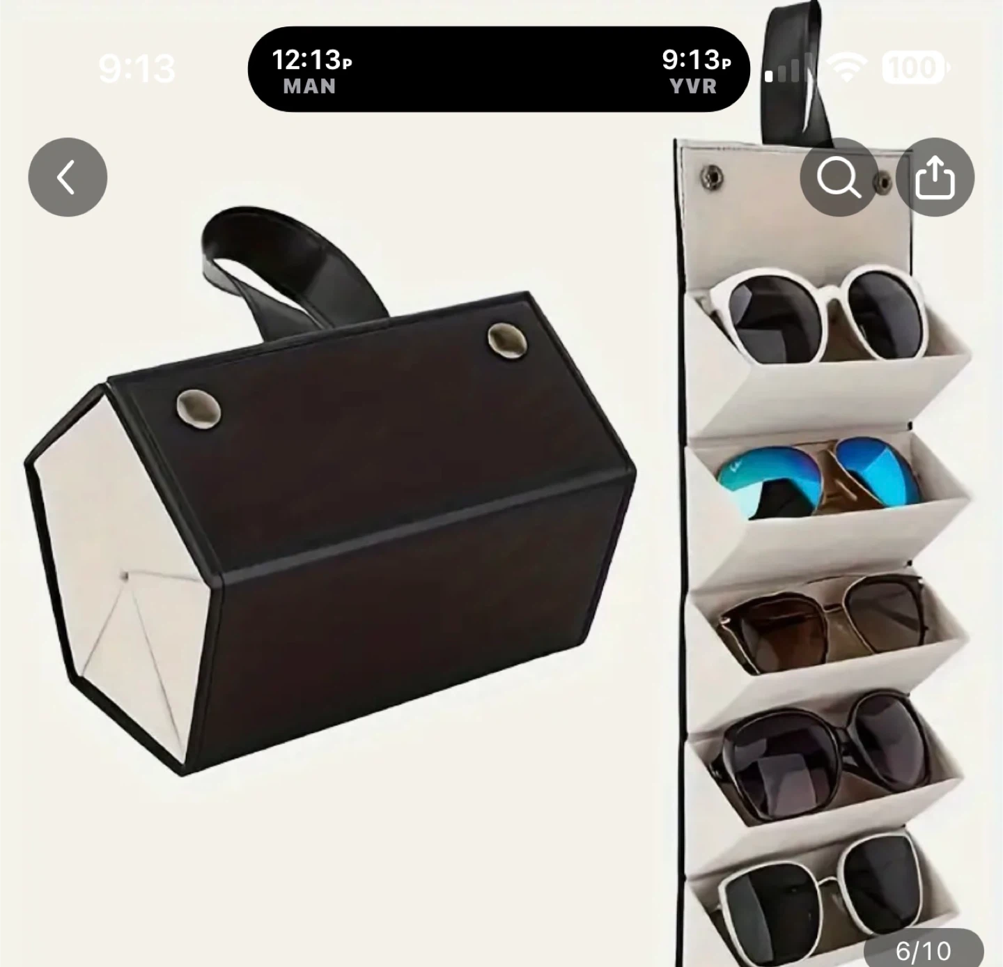 Keep your sunglasses organized with this stylish black leather organizer case! It features a convenient handle and button closures. When open, it can be hung up to easily view and select your sunglasses. Dimensions: - 123mm x 168mm (case) - 16.6cm x 46cm (when open)