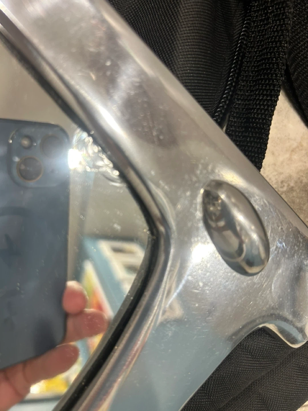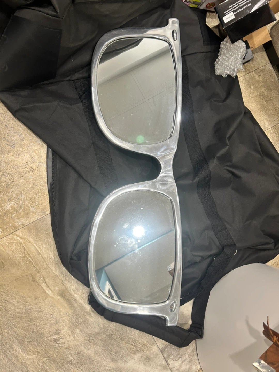 Selling a really fun mirror shaped like sunglasses! It's in great condition and would be a cool addition to any room 39” x 11.5” Small damage in top right corner