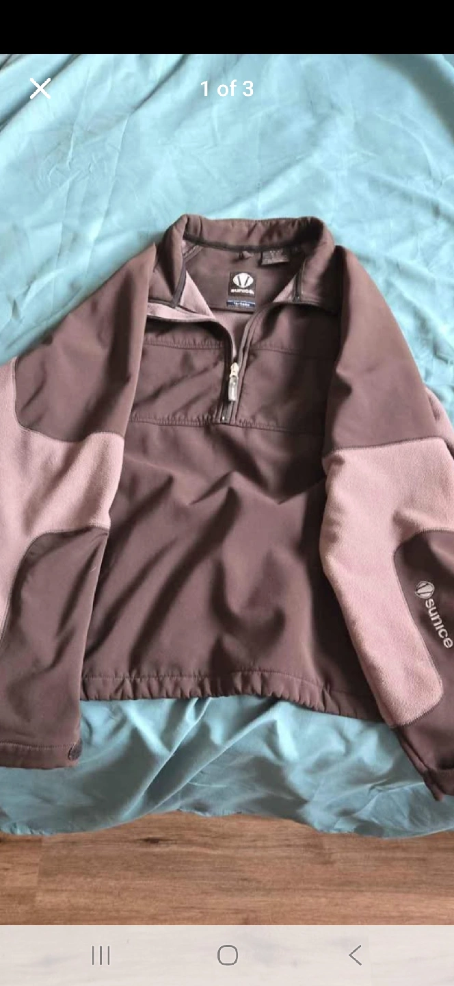 Selling a Sunice Tornado pullover in size L. It's in great condition and ready for a new home! The material is a comfortable blend, perfect for layering or wearing on its own during cooler days. The design features a quarter-zip front and a stylish colour-blocked pattern.