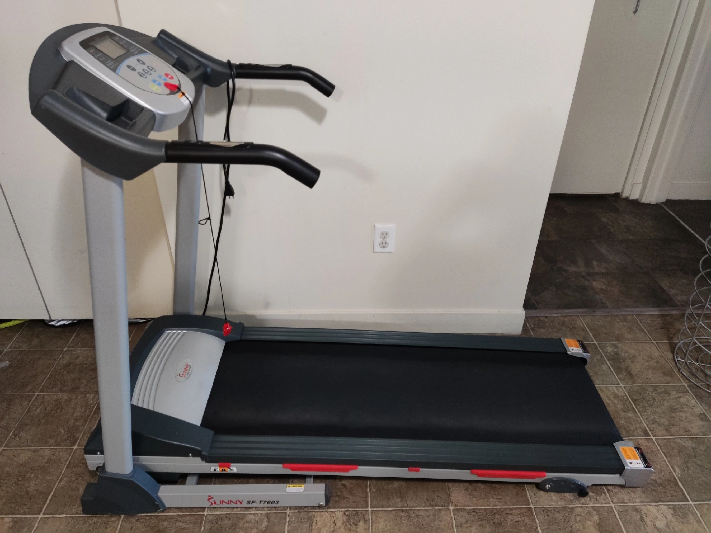 Selling a Sunny Health & Fitness SF-T7603 treadmill. It's in good condition and ready for a new home gym! It folds up for easy storage, saving space when not in use