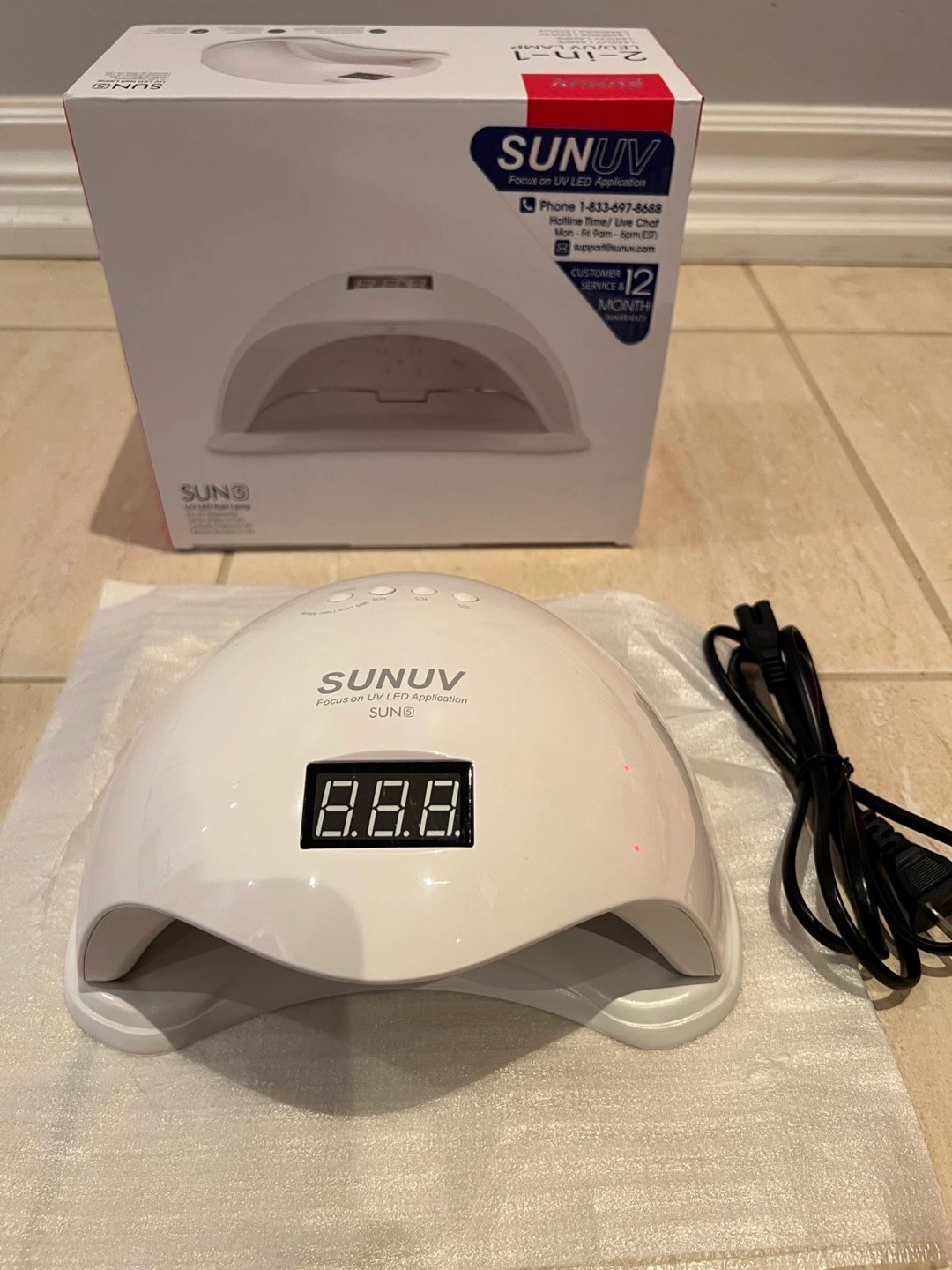 Selling a SUNUV SUN 5 UV LED Nail Lamp that's in excellent condition! It comes with the original box. Perfect for getting salon-quality nails at home