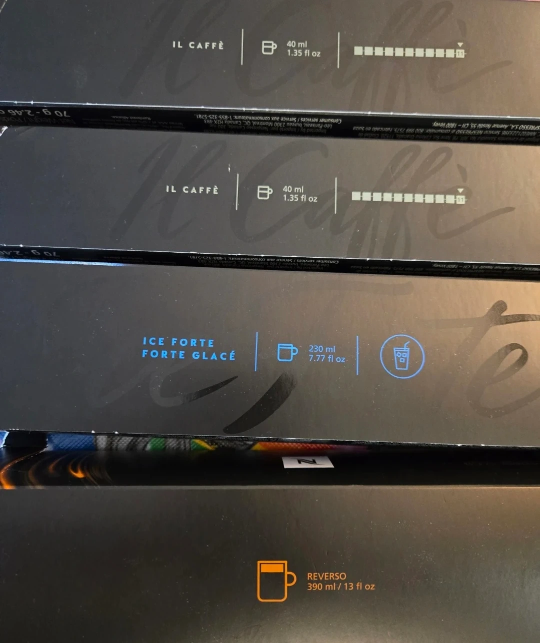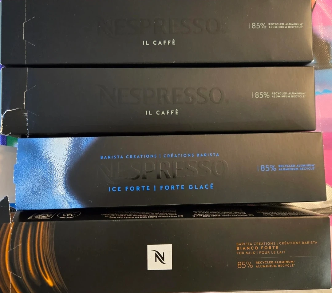 39Selling a variety of Nespresso capsules for Vertuo machine for a bargain! Please note, the boxes were thrown by mistake so cannot be used for gifting. Includes: Il Caffe, - 20 capsules [2 sleeves] Ice Forte - 9 capsules Bianco Forte for milk - 10 capsules $3 each kind of sleeve, $10 for all 39 capsules!!