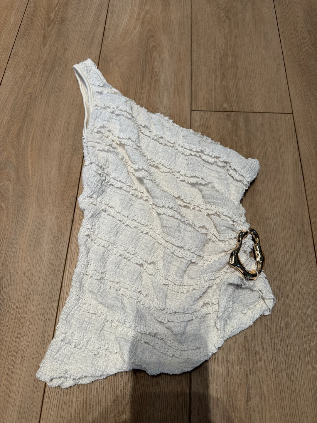 Show allSuper cute frill white tank with gold detailing