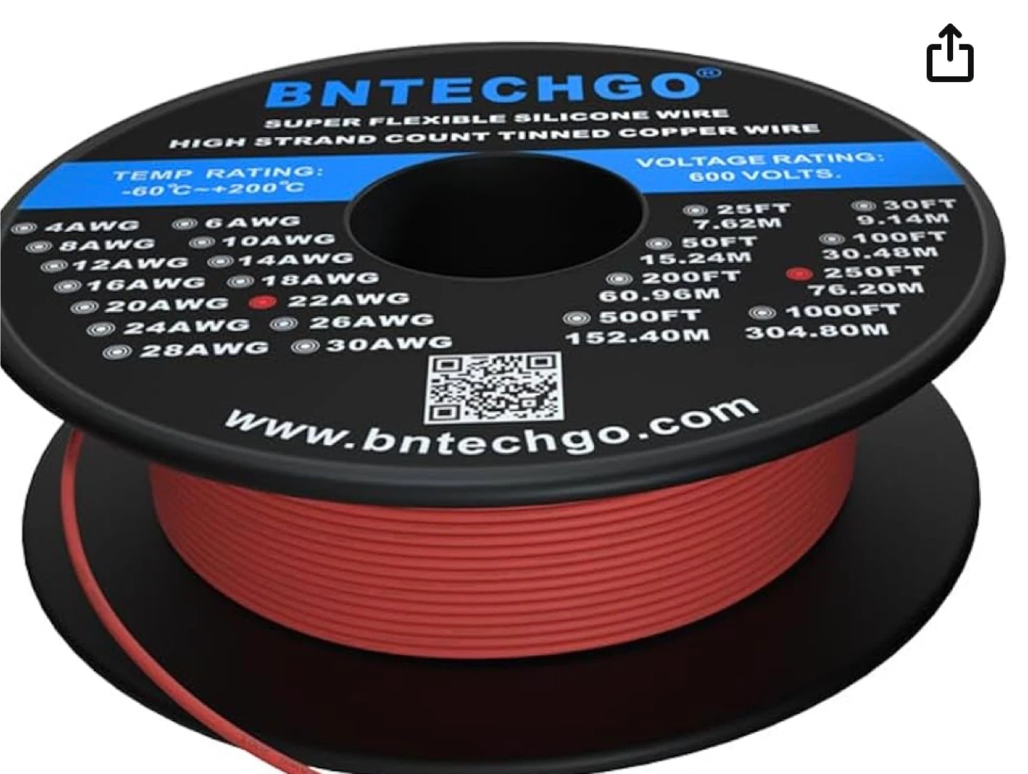 6822 Gauge Silicone Wire Spool 250 ft Red Flexible 22 AWG Stranded Tinned Copper Wire