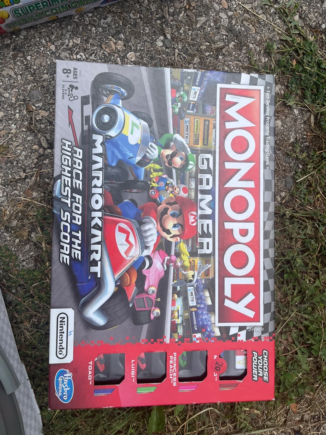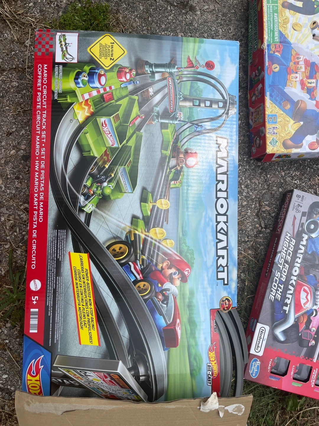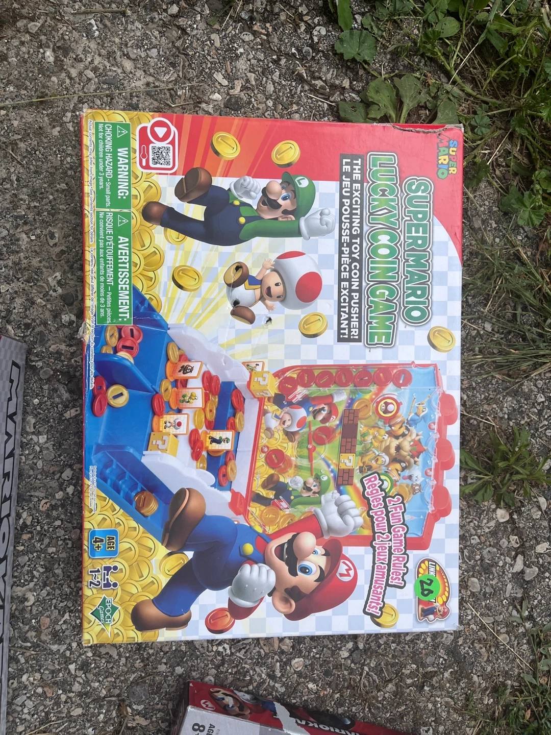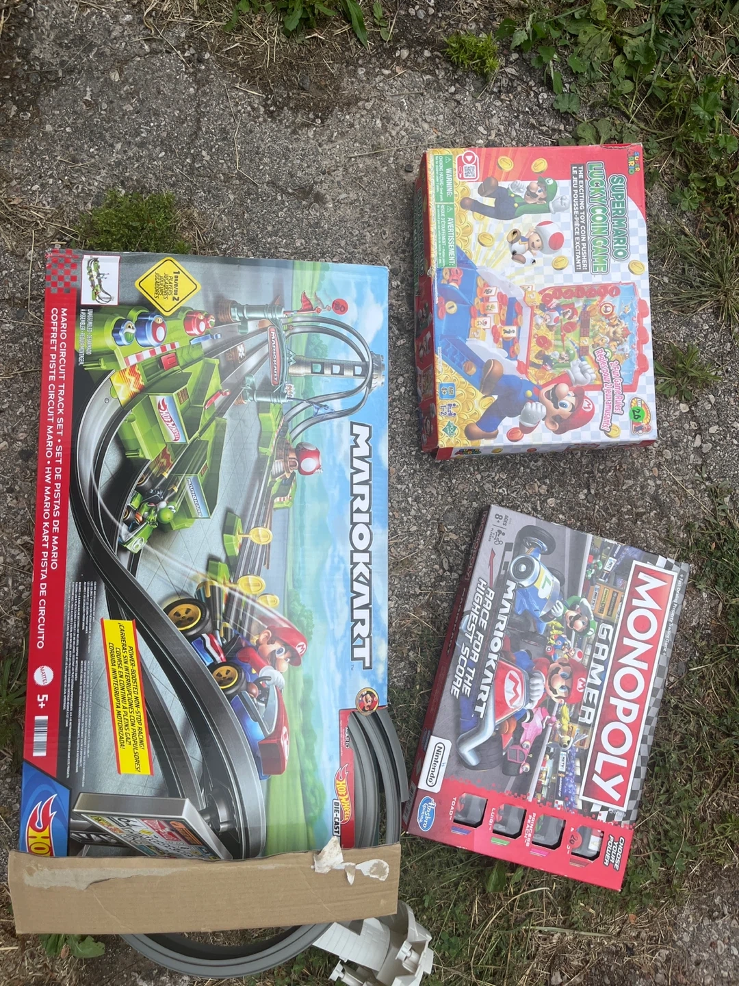 Super Mario board game bundle. Includes Super Mario hot wheels track Super Mario lucky coin game bought: 20 Super Mario monopoly bought: 30 Super Mario plant attack bought: 20 Hot wheels track was barley used originally bought for $150 Game instructions may be slightly ripped but all pieces should be there Price for the bundle in general $100 if you want any of the individual games we can discuss pricing