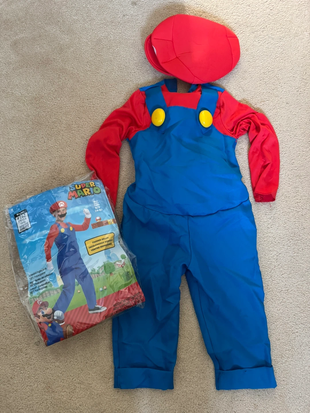 62Selling a Super Mario costume for kids! It's a size small, suitable for ages 4-6. The costume includes the jumpsuit and hat for that authentic Mario look. Perfect for Halloween or dress-up fun!