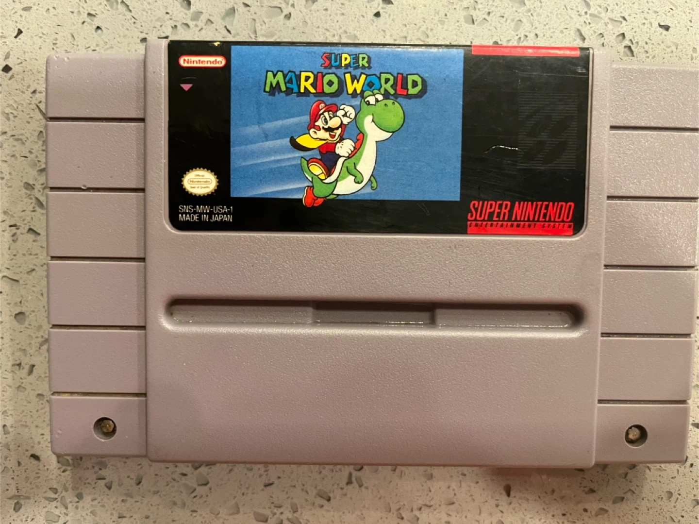 15Selling a Super Mario World game cartridge for the Super Nintendo Entertainment System (SNES). A classic game for a retro console!