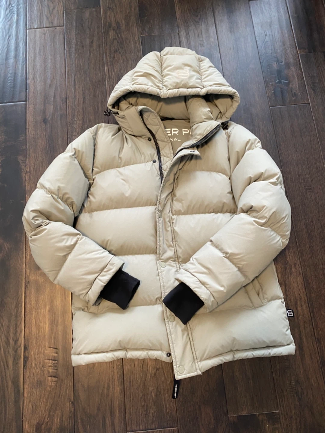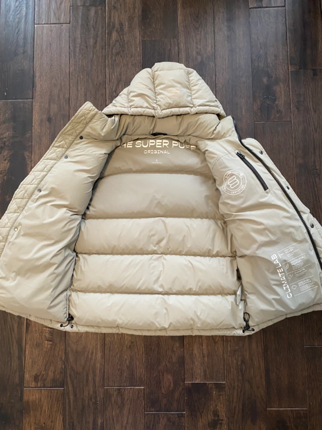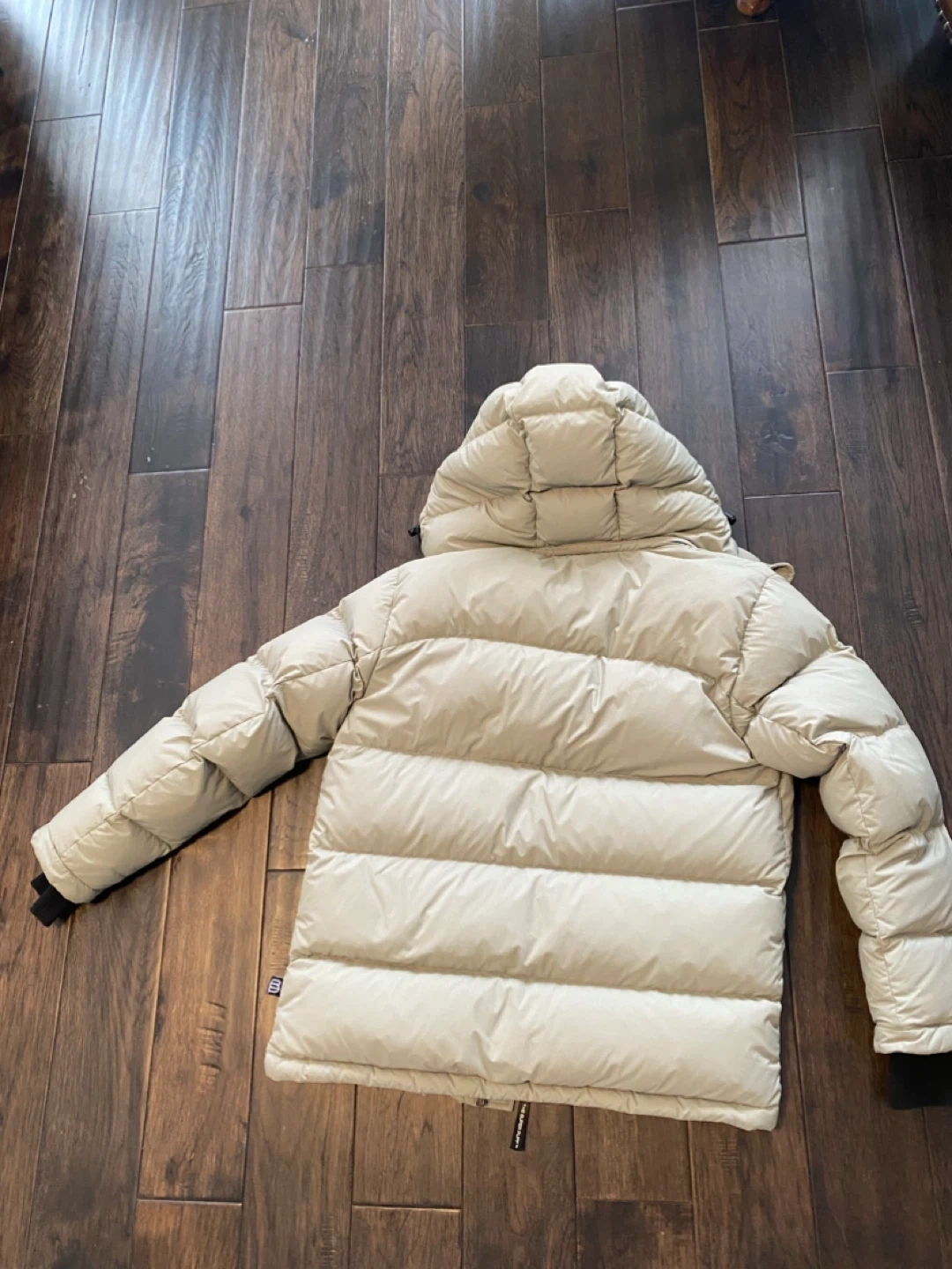 2Cozy Aritzia Super Puff down puffer jacket, perfect for staying warm this winter! It's in great condition and ready for a new home. The neutral colour goes with everything!